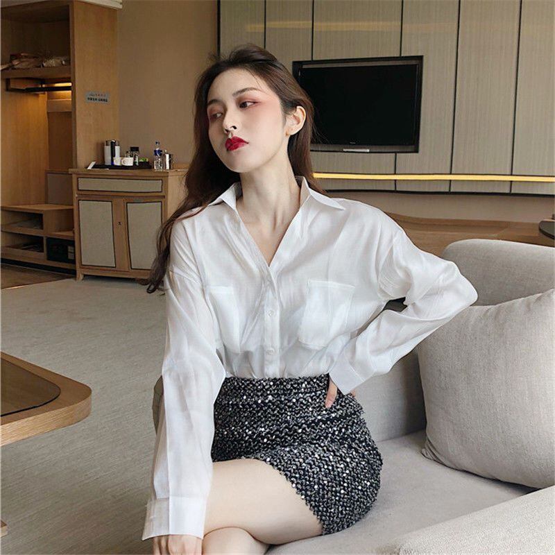 トップス シャツ ブラウス レディース 前開き ロング 長袖 Vネック 襟付き 角襟 オーバーサイズ フェミニン ストリート ボーイフレンド ボタン ヴィンテージ アメカジ かわいい 大人可愛い きれいめ シンプル カジュアル おしゃれ かっこいい レトロ こなれ感 ラフ メンズライク マニッシュ ボーイッシュ ルーズ クール 抜け感 ベーシック アクティブ ナチュラル 無地 春 秋 お出かけ 重ね着 韓国 オルチャン 体型カバー 普段使い 着回し レイヤード S M L XL 黒 ブラック カーキ