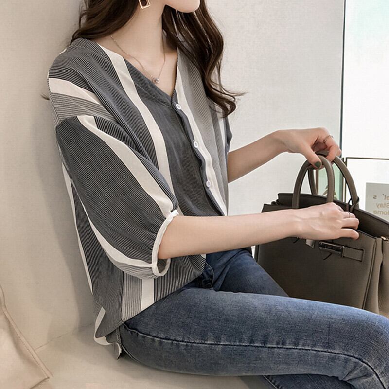 トップス シャツ ブラウス プルオーバー レディース ロング 5分袖 Vネック 角襟 オーバーサイズ シフォン きれいめ シンプル カジュアル 上品 おしゃれ かっこいい レトロ ラフ ガーリー 抜け感 キュート ベーシック アクティブ ロマンティック ナチュラル 無地 春 夏 デート お出かけ イベント 旅行 休日 カフェ 重ね着 楽ちん 普段使い 着回し レイヤード ロールアップ 定番 ゆったり ゆる フリーサイズ 白 ホワイト 黒 ブラック 黄色 イエロー ピンク レッド ネイビー ベーシックカラー