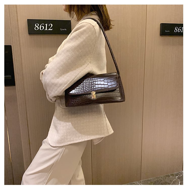 クロコ柄の高級感あるバッグ カジュアルからきれいめまでファッションを選ばず、様々なシーンで活躍してくれるアイテムです。 色展開 コーヒー ブラック ブラウン レッド ホワイト ※モニターの仕様や、角度によって多少色合いが異なる場合がございます。 サイズ 高さ14cm ×横27.5cm ×まち5cm 肩紐35cm 重さ0.5kg ※サイズは平置きで測定しております。測り方や位置、素材の性質によりサイズに1-4cm程の誤差が生じる場合がございます。 【商品について】 ・こちらの商品は海外お取り寄せ商品です。 ・お手元に到着するまでに10-25日程度お時間をいただいておりますが、さらにお時間がかかってしまう場合や、欠品や不具合などにより商品をご用意できずご注文をキャンセルとさせていただく場合もございます。予めご了承下さいませ。 ・商品はすべて検品を行なった上で発送しております。到着後は、できるだけ早めに商品の状態をご確認願います。 ・海外製品のため日本製よりも縫製や糸の始末が甘い、微細なほつれ、匂いや微細な汚れなどといった場合がございます。ご理解、ご了承いただけますようお願いいたします。 ・万が一、初期不良や誤納品がございましたら、商品到着より5日以内にお知らせ下さい。誠意を持って早急に対応させていただきます。 【返品について】 ご注文確定後のキャンセルや内容変更はお受けすることができません。 不良品または誤納品の場合を除き、返品・交換はお受けできませんのでご了承ください。 何かご不明な点などがございましたら、お気軽にお問い合せくださいませ。 bg-160