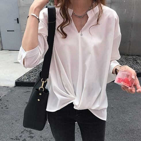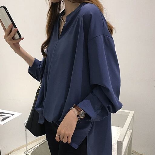 トップス シャツ ブラウス レディース 前開き ロング 長袖 Vネック 襟付き 角襟 オーバーサイズ フェミニン ストリート ボーイフレンド ボタン ヴィンテージ アメカジ かわいい 大人可愛い きれいめ シンプル カジュアル おしゃれ かっこいい レトロ こなれ感 ラフ メンズライク マニッシュ ボーイッシュ ルーズ クール 抜け感 ベーシック アクティブ ナチュラル 無地 春 秋 お出かけ 重ね着 韓国 オルチャン 体型カバー 普段使い 着回し レイヤード S M L XL 黒 ブラック カーキ