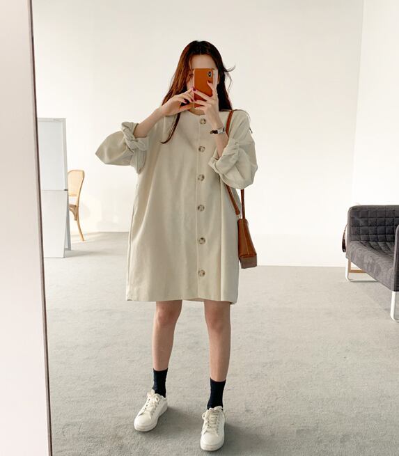 ワンピース レディース 膝上 長袖 ボリューム袖 ラウンドネック ゆったり ゆる 無地 前開き 大人可愛い きれいめ 上品 お洒落 おしゃれ 主役級 存在感 大人 シンプル カジュアル こなれ感 ルーズ ビッグサイズ オルチャン 韓国 韓国系 ファッション オシャレ 学生 通学 お出かけ 女子会 休日 旅行 マタニティ ママ 体型カバー 普段使い 楽ちん 公園デビュー インスタ映え 10代 20代 30代 40代 白 ホワイト