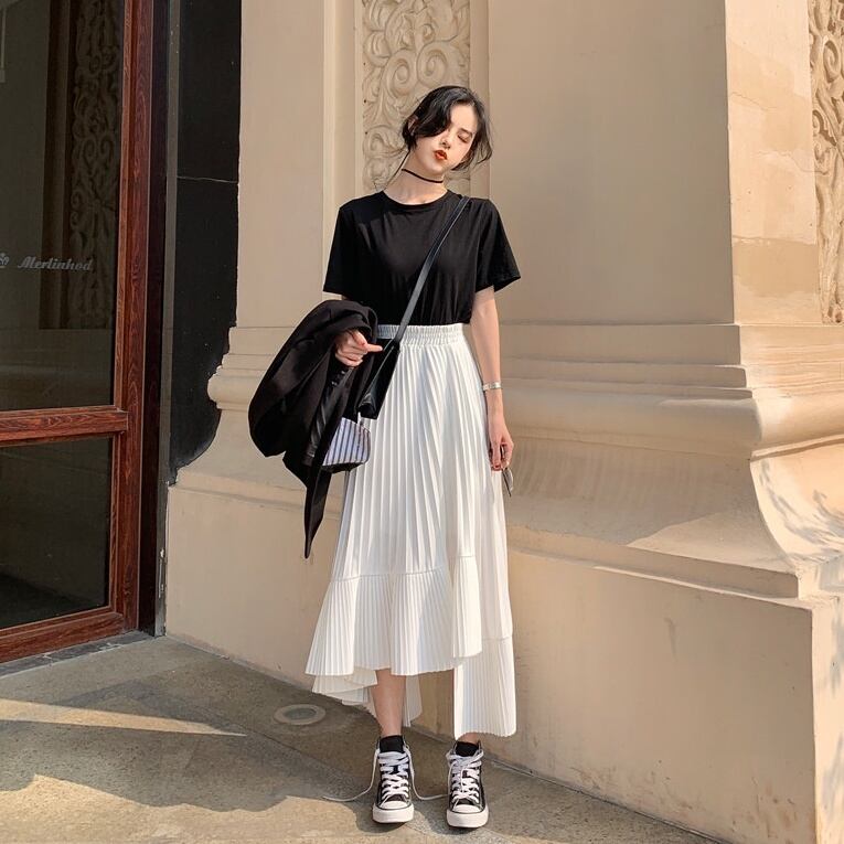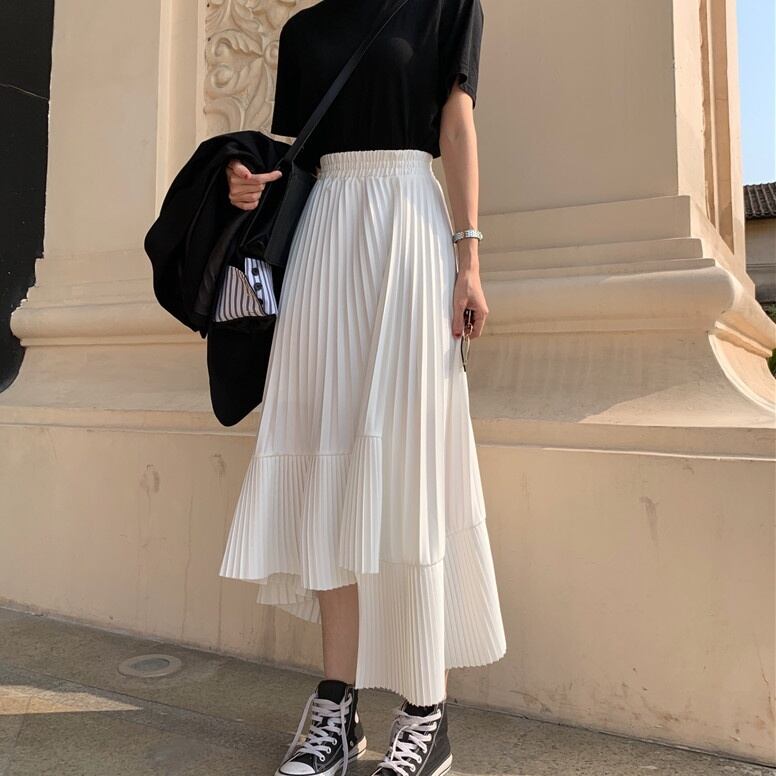 アシンメトリーがお洒落なプリーツスカート!! 品のある綺麗目な一枚です!! 色展開 ホワイト ブラック サイズ S M L サイズ(cm) S /スカート丈 72 ウエストゴム M /スカート丈 73 ウエストゴム L /スカート丈 74 ウエストゴム ※モニターの仕様や、角度によって多少色合いが異なる場合がございます。 ※サイズは平置きで測定しております。測り方や位置、素材の性質によりサイズに1-4cm程の誤差が生じる場合がございます。 【商品について】 ・こちらの商品は海外お取り寄せ商品です。 ・お手元に到着するまでに10-25日程度お時間をいただいておりますが、さらにお時間がかかってしまう場合や、欠品や不具合などにより商品をご用意できずご注文をキャンセルとさせていただく場合もございます。予めご了承下さいませ。 ・商品はすべて検品を行なった上で発送しております。到着後は、できるだけ早めに商品の状態をご確認願います。 ・海外製品のため日本製よりも縫製や糸の始末が甘い、微細なほつれ、匂いや微細な汚れなどといった場合がございます。ご理解、ご了承いただけますようお願いいたします。 ・万が一、初期不良や誤納品がございましたら、商品到着より5日以内にお知らせ下さい。誠意を持って早急に対応させていただきます。 【返品について】 ご注文確定後のキャンセルや内容変更はお受けすることができません。 不良品または誤納品の場合を除き、返品・交換はお受けできませんのでご了承ください。 何かご不明な点などがございましたら、お気軽にお問い合せくださいませ。 sk-041