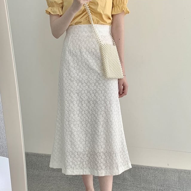 スカート サロペット 膝下 ミモレ ミモレ丈 フレア Aライン 刺繍 ハイウエスト かわいい 大人可愛い カジュアル 上品 おしゃれ お洒落 大人可愛い 大人女子 ガーリー 柄 花柄 小花柄 フラワー 夏 2021 20代 30代 女性用 ママ 女の子 学生 通学 デート お出かけ 女子会 お泊まり 休日 イベント リゾート 旅行 海 ガーデン レストラン 着回し 普段使い 重ね着 お揃い 双子 韓国 韓国系 オルチャン ファッション コーデ スタイル 楽ちん モテ 新作 S