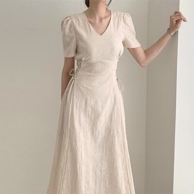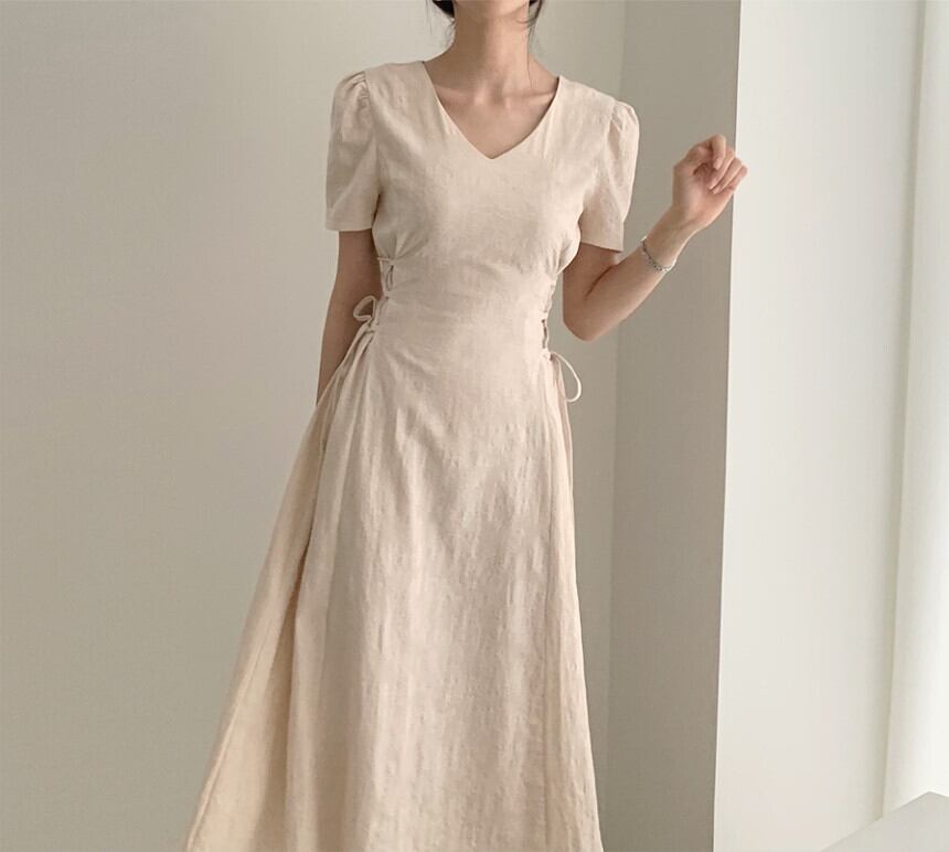 シンプルだけど高見えするデザイン! ウエストのリボンでで着痩せ効果も◎ 【カラー】グレー ベージュ ※モニターの仕様や、角度によって多少色合いが異なる場合がございます。 【サイズ (cm) 】ワンサイズ 長さ:110 バスト:82 ウエスト:74(締めることができます) ヒップ:48 肩幅:38.5 袖丈:23 ※サイズは平置きで測定しております。測り方や位置、素材の性質によりサイズに1-4cm程の誤差が生じる場合がございます。 【商品について】 ・こちらの商品は海外お取り寄せ商品です。 ・お手元に到着するまでに10-25日程度お時間をいただいておりますが、さらにお時間がかかってしまう場合や、欠品や不具合などにより商品をご用意できずご注文をキャンセルとさせていただく場合もございます。予めご了承下さいませ。 ・商品はすべて検品を行なった上で発送しております。到着後は、できるだけ早めに商品の状態をご確認願います。 ・海外製品のため日本製よりも縫製や糸の始末が甘い、微細なほつれ、匂いや微細な汚れなどといった場合がございます。ご理解、ご了承いただけますようお願いいたします。 ・万が一、初期不良や誤納品がございましたら、商品到着より5日以内にお知らせ下さい。誠意を持って早急に対応させていただきます。 【返品について】 ご注文確定後のキャンセルや内容変更はお受けすることができません。 不良品または誤納品の場合を除き、返品・交換はお受けできませんのでご了承ください。 何かご不明な点などがございましたら、お気軽にお問い合せくださいませ。 op-355