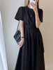 ワンピース レディース シャツワンピ フレア 前開き マキシ 半袖 スタンドカラー Aライン フェミニン ストリート かわいい 大人可愛い きれいめ シンプル カジュアル おしゃれ かっこいい レトロ ガーリー ルーズ 抜け感 ベーシック アクティブ ナチュラル 無地 夏 お出かけ リゾート 旅行 ビーチ 休日 バカンス ショッピング カフェ フェス 重ね着 楽ちん 普段使い 着回し トレンド 流行 インスタ映え 定番 ゆったり ゆる フリーサイズ 白 ホワイト 黒 ブラック モノトーン ベーシックカラー