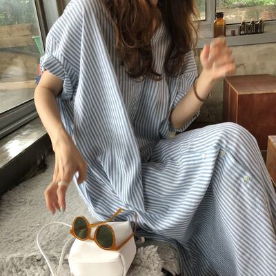 夏にぴったり爽やかなシャツワンピ ゆったり着られるので体型カバーにも◎ 【カラー】ブルー ※モニターの仕様や、角度によって多少色合いが異なる場合がございます。 【サイズ (cm) 】ワンサイズ スカート丈:120バスト:60肩幅:60袖丈:21 ※サイズは平置きで測定しております。測り方や位置、素材の性質によりサイズに1-4cm程の誤差が生じる場合がございます。 【商品について】 ・こちらの商品は海外お取り寄せ商品です。 ・お手元に到着するまでに10-25日程度お時間をいただいておりますが、さらにお時間がかかってしまう場合や、欠品や不具合などにより商品をご用意できずご注文をキャンセルとさせていただく場合もございます。予めご了承下さいませ。 ・商品はすべて検品を行なった上で発送しております。到着後は、できるだけ早めに商品の状態をご確認願います。 ・海外製品のため日本製よりも縫製や糸の始末が甘い、微細なほつれ、匂いや微細な汚れなどといった場合がございます。ご理解、ご了承いただけますようお願いいたします。 ・万が一、初期不良や誤納品がございましたら、商品到着より5日以内にお知らせ下さい。誠意を持って早急に対応させていただきます。 【返品について】 ご注文確定後のキャンセルや内容変更はお受けすることができません。 不良品または誤納品の場合を除き、返品・交換はお受けできませんのでご了承ください。 何かご不明な点などがございましたら、お気軽にお問い合せくださいませ。 op-371