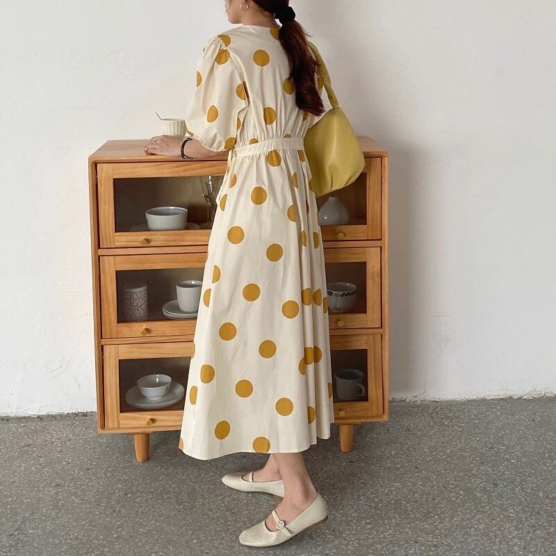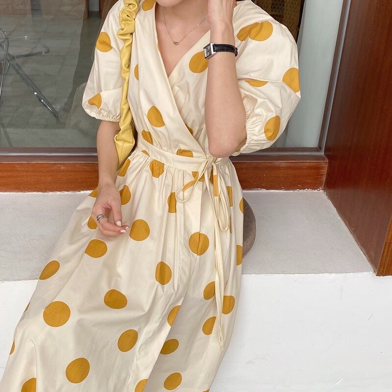 レトロ感ある可愛らしいワンピース ウエストベルトで着痩せ効果も◎ 【カラー】アプリコット ホワイト イエロー ※モニターの仕様や、角度によって多少色合いが異なる場合がございます。 【サイズ (cm) 】ワンサイズ 長さ:115バスト:肩幅:33袖丈:33 ※サイズは平置きで測定しております。測り方や位置、素材の性質によりサイズに1-4cm程の誤差が生じる場合がございます。 【商品について】 ・こちらの商品は海外お取り寄せ商品です。 ・お手元に到着するまでに10-25日程度お時間をいただいておりますが、さらにお時間がかかってしまう場合や、欠品や不具合などにより商品をご用意できずご注文をキャンセルとさせていただく場合もございます。予めご了承下さいませ。 ・商品はすべて検品を行なった上で発送しております。到着後は、できるだけ早めに商品の状態をご確認願います。 ・海外製品のため日本製よりも縫製や糸の始末が甘い、微細なほつれ、匂いや微細な汚れなどといった場合がございます。ご理解、ご了承いただけますようお願いいたします。 ・万が一、初期不良や誤納品がございましたら、商品到着より5日以内にお知らせ下さい。誠意を持って早急に対応させていただきます。 【返品について】 ご注文確定後のキャンセルや内容変更はお受けすることができません。 不良品または誤納品の場合を除き、返品・交換はお受けできませんのでご了承ください。 何かご不明な点などがございましたら、お気軽にお問い合せくださいませ。 op-374