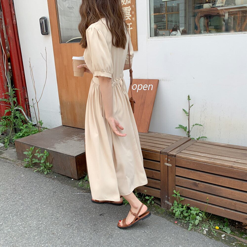 こなれ感のあるカジュアル韓国ワンピース これを着てカフェに行きたいですね♪ 【カラー】ベージュ 水色 ※モニターの仕様や、角度によって多少色合いが異なる場合がございます。 【サイズ (cm) 】 サイズ スカート丈 バスト 袖丈 S 115 100 24 36 M 116 104 25 37 L 117 108 26 38 XL 118 112 27 39 ※サイズは平置きで測定しております。測り方や位置、素材の性質によりサイズに1-4cm程の誤差が生じる場合がございます。 【商品について】 ・こちらの商品は海外お取り寄せ商品です。 ・お手元に到着するまでに10-25日程度お時間をいただいておりますが、さらにお時間がかかってしまう場合や、欠品や不具合などにより商品をご用意できずご注文をキャンセルとさせていただく場合もございます。予めご了承下さいませ。 ・商品はすべて検品を行なった上で発送しております。到着後は、できるだけ早めに商品の状態をご確認願います。 ・海外製品のため日本製よりも縫製や糸の始末が甘い、微細なほつれ、匂いや微細な汚れなどといった場合がございます。ご理解、ご了承いただけますようお願いいたします。 ・万が一、初期不良や誤納品がございましたら、商品到着より5日以内にお知らせ下さい。誠意を持って早急に対応させていただきます。 【返品について】 ご注文確定後のキャンセルや内容変更はお受けすることができません。 不良品または誤納品の場合を除き、返品・交換はお受けできませんのでご了承ください。 何かご不明な点などがございましたら、お気軽にお問い合せくださいませ。 op-438