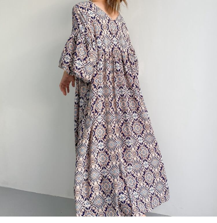 上品なペイズリー柄ワンピース スカート丈が選べます!! 【カラー】ダークブルー ライトブルー ※モニターの仕様や、角度によって多少色合いが異なる場合がございます。 【サイズ (cm) 】 【ロングスタイル】ワンサイズ、長さ120、バスト112、肩・袖丈50 【ショートスタイル】ワンサイズ、長さ80、バスト112、 肩・袖丈50 ※サイズは平置きで測定しております。測り方や位置、素材の性質によりサイズに1-4cm程の誤差が生じる場合がございます。 【商品について】 ・こちらの商品は海外お取り寄せ商品です。 ・お手元に到着するまでに10-25日程度お時間をいただいておりますが、さらにお時間がかかってしまう場合や、欠品や不具合などにより商品をご用意できずご注文をキャンセルとさせていただく場合もございます。予めご了承下さいませ。 ・商品はすべて検品を行なった上で発送しております。到着後は、できるだけ早めに商品の状態をご確認願います。 ・海外製品のため日本製よりも縫製や糸の始末が甘い、微細なほつれ、匂いや微細な汚れなどといった場合がございます。ご理解、ご了承いただけますようお願いいたします。 ・万が一、初期不良や誤納品がございましたら、商品到着より5日以内にお知らせ下さい。誠意を持って早急に対応させていただきます。 【返品について】 ご注文確定後のキャンセルや内容変更はお受けすることができません。 不良品または誤納品の場合を除き、返品・交換はお受けできませんのでご了承ください。 何かご不明な点などがございましたら、お気軽にお問い合せくださいませ。 op-490