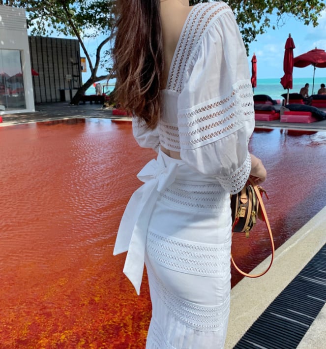 セットアップ レディース 上下セット 2点セット ブラウス ショート丈 七分袖 ボリューム袖 スクエアネック タイトスカート ロング丈 マーメイド 透け感 ボーダー バックリボン 大人可愛い きれいめ 上品 お洒落 おしゃれ 主役級 存在感 大人 シンプル こなれ感 オルチャン 韓国 韓国系 ファッション オシャレ 休日 旅行 学生 通学 デート パーティー イベント お出かけ インスタ映え 普段使い 10代 20代 白 ホワイト