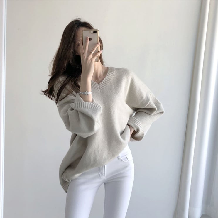 トップス ニットソー セーター 袖あり 長袖 ボリューム袖 Vネック ハイウエスト 薄手 かわいい きれいめ シンプル 大人 上品 おしゃれ お洒落 大人可愛い 大人女子 キュート 抜け感 無地 0 春 秋 2021 20代 30代 女性用 ママ 女の子 デート お出かけ 公園デビュー 女子会 お泊まり 休日 イベント リゾート 旅行 着回し 普段使い 韓国 韓国系 オルチャン ファッション コーデ スタイル 楽ちん モテ 新作 フリーサイズ 白 ホワイト アプリコット