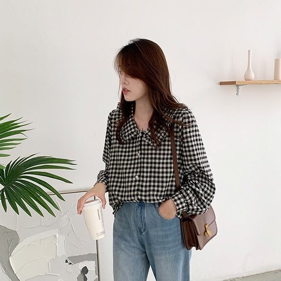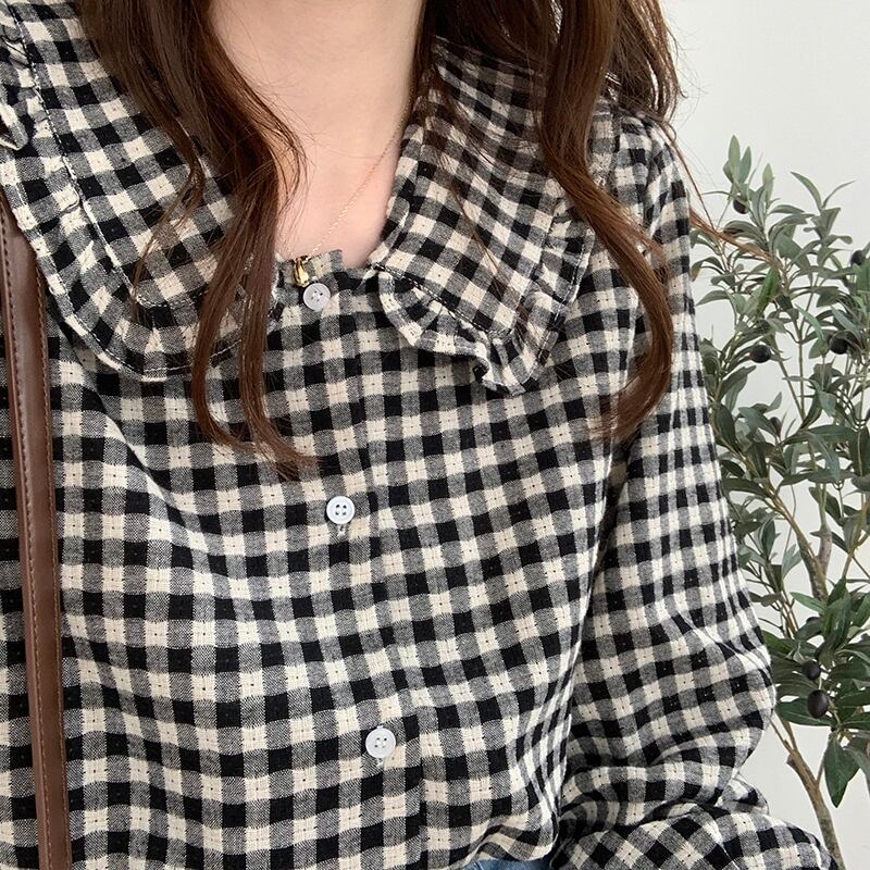 トップス Tシャツ シャツ ブラウス 袖あり 長袖 Vネック 襟付き 切り替えデザイン 透け感 シースルー 薄手 0 かわいい 大人可愛い カジュアル おしゃれ お洒落 かっこいい レトロ 大人可愛い 大人女子 抜け感 柄 チェック柄 0 春 秋 2021 10代 20代 30代 女性用 ママ 女の子 デート お出かけ 公園デビュー 女子会 お泊まり 休日 イベント リゾート 旅行 着回し 普段使い 韓国 オルチャン ファッション コーデ スタイル 楽ちん 新作 フリーサイズ ホワイト ブラック
