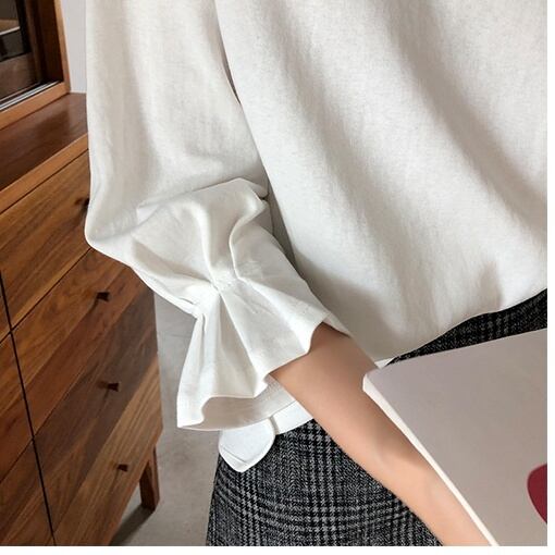 トップス Tシャツ シャツ ブラウス 白シャツ 白トップス 袖あり 長袖 Uネック ラウンドネック 襟付き フリル 薄手 0 かわいい 大人可愛い きれいめ シンプル カジュアル 大人 上品 おしゃれ お洒落 かっこいい レトロ ラフ メンズライク マニッシュ ボーイッシュ 抜け感 無地 0 春 秋 2021 10代 20代 30代 女性用 ママ 女の子 デート お出かけ 公園デビュー 女子会 お泊まり 休日 イベント リゾート 旅行 着回し 普段使い 韓国 韓国系 オルチャン ファッション コーデ