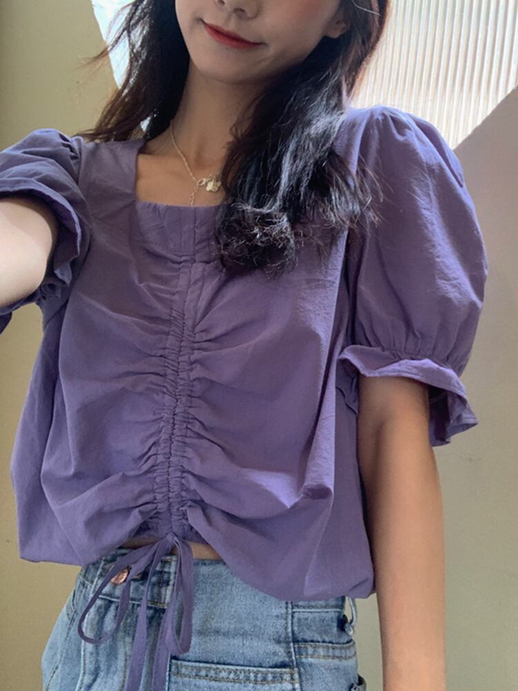 スクエアネックで首元がきれいに見える ショート丈なのでハイウエストボトムとの相性抜群◎ 【カラー】ネイビー オレンジ ホワイト パープル ※モニターの仕様や、角度によって多少色合いが異なる場合がございます。 【サイズ (cm) 】ワンサイズ 肩幅34 袖丈26 バスト90 着丈47 ※サイズは平置きで測定しております。測り方や位置、素材の性質によりサイズに1-4cm程の誤差が生じる場合がございます。 【商品について】 ・こちらの商品は海外お取り寄せ商品です。 ・お手元に到着するまでに10-25日程度お時間をいただいておりますが、さらにお時間がかかってしまう場合や、欠品や不具合などにより商品をご用意できずご注文をキャンセルとさせていただく場合もございます。予めご了承下さいませ。 ・商品はすべて検品を行なった上で発送しております。到着後は、できるだけ早めに商品の状態をご確認願います。 ・海外製品のため日本製よりも縫製や糸の始末が甘い、微細なほつれ、匂いや微細な汚れなどといった場合がございます。ご理解、ご了承いただけますようお願いいたします。 ・万が一、初期不良や誤納品がございましたら、商品到着より5日以内にお知らせ下さい。誠意を持って早急に対応させていただきます。 【返品について】 ご注文確定後のキャンセルや内容変更はお受けすることができません。 不良品または誤納品の場合を除き、返品・交換はお受けできませんのでご了承ください。 何かご不明な点などがございましたら、お気軽にお問い合せくださいませ。 ts-516