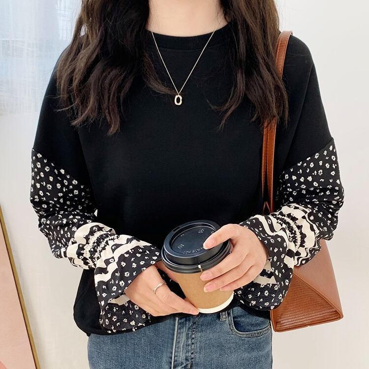 トップス Tシャツ カットソー 白シャツ 袖あり 長袖 Uネック ラウンドネック 襟なし 切り替えデザイン フリル 切り替えデザイン 薄手 0 かわいい カジュアル 大人 上品 おしゃれ お洒落 レトロ 大人可愛い こなれ感 キュート ガーリー 抜け感 柄 花柄 小花柄 フラワー 0 冬 2021 10代 20代 30代 女性用 ママ 女の子 デート お出かけ 公園デビュー 女子会 お泊まり 休日 イベント リゾート 旅行 着回し 普段使い韓国系 オルチャン ファッション コーデ スタイル 楽ちん