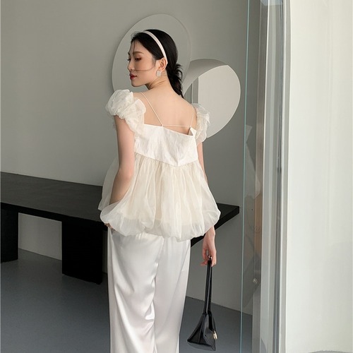 ふんわりとした袖とウエスト部分がゴージャス!! パーティーや特別な日に着たい華やかな一枚!! 色展開 ホワイト ブラック サイズ S M L サイズ(cm) S /着丈 63 /バスト 102 M /着丈 64 /バスト 106 L /着丈 65 /バスト 110 ※モニターの仕様や、角度によって多少色合いが異なる場合がございます。 ※サイズは平置きで測定しております。測り方や位置、素材の性質によりサイズに1-4cm程の誤差が生じる場合がございます。 【商品について】 ・こちらの商品は海外お取り寄せ商品です。 ・お手元に到着するまでに10-25日程度お時間をいただいておりますが、さらにお時間がかかってしまう場合や、欠品や不具合などにより商品をご用意できずご注文をキャンセルとさせていただく場合もございます。予めご了承下さいませ。 ・商品はすべて検品を行なった上で発送しております。到着後は、できるだけ早めに商品の状態をご確認願います。 ・海外製品のため日本製よりも縫製や糸の始末が甘い、微細なほつれ、匂いや微細な汚れなどといった場合がございます。ご理解、ご了承いただけますようお願いいたします。 ・万が一、初期不良や誤納品がございましたら、商品到着より5日以内にお知らせ下さい。誠意を持って早急に対応させていただきます。 【返品について】 ご注文確定後のキャンセルや内容変更はお受けすることができません。 不良品または誤納品の場合を除き、返品・交換はお受けできませんのでご了承ください。 何かご不明な点などがございましたら、お気軽にお問い合せくださいませ。 ts-626