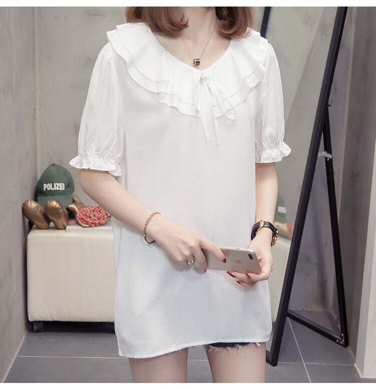 襟のフリルが可愛いトップス 女性らしいスタイルが好きな方にオススメ! 【カラー】ホワイト ブルー ※モニターの仕様や、角度によって多少色合いが異なる場合がございます。 【サイズ (cm) 】 L /着丈 63.0 /バスト 100.0 XL /着丈 64.0 /バスト 106.0 2XL /着丈 65.0 /バスト 112.0 3XL /着丈 66.0 /バスト 118.0 4XL /着丈 67.0 /バスト 124.0 ※サイズは平置きで測定しております。測り方や位置、素材の性質によりサイズに1-4cm程の誤差が生じる場合がございます。 【商品について】 ・こちらの商品は海外お取り寄せ商品です。 ・お手元に到着するまでに10-25日程度お時間をいただいておりますが、さらにお時間がかかってしまう場合や、欠品や不具合などにより商品をご用意できずご注文をキャンセルとさせていただく場合もございます。予めご了承下さいませ。 ・商品はすべて検品を行なった上で発送しております。到着後は、できるだけ早めに商品の状態をご確認願います。 ・海外製品のため日本製よりも縫製や糸の始末が甘い、微細なほつれ、匂いや微細な汚れなどといった場合がございます。ご理解、ご了承いただけますようお願いいたします。 ・万が一、初期不良や誤納品がございましたら、商品到着より5日以内にお知らせ下さい。誠意を持って早急に対応させていただきます。 【返品について】 ご注文確定後のキャンセルや内容変更はお受けすることができません。 不良品または誤納品の場合を除き、返品・交換はお受けできませんのでご了承ください。 何かご不明な点などがございましたら、お気軽にお問い合せくださいませ。 ts-554