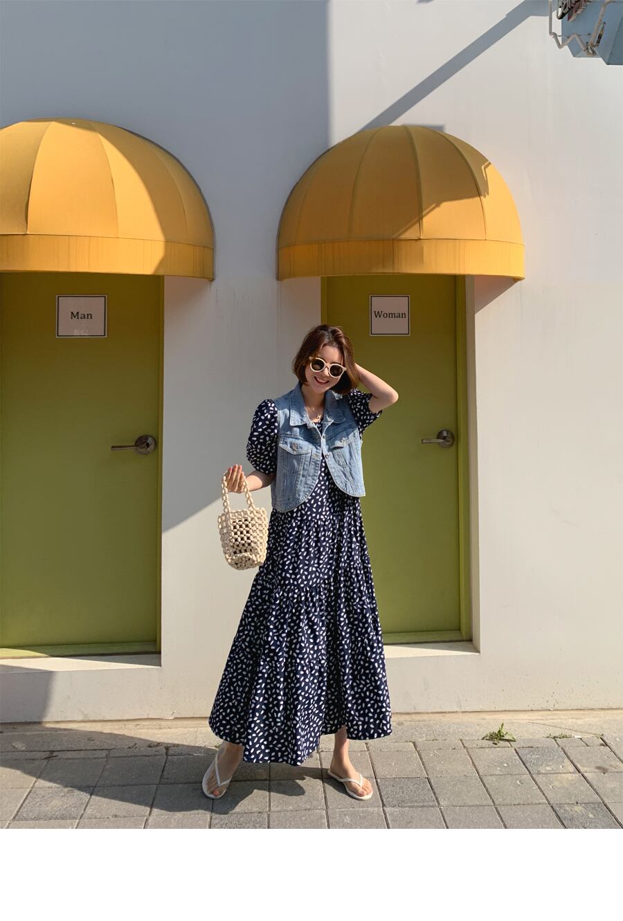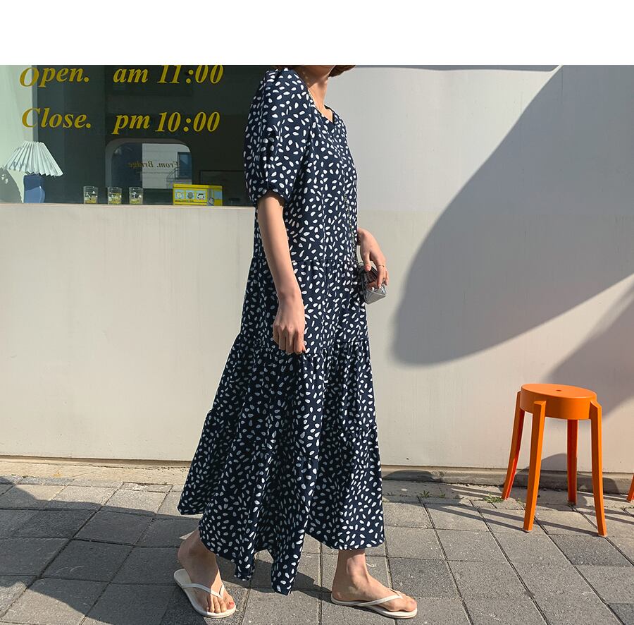 ワンピース ロング丈 袖あり 半袖 パフスリーブ Uネック 襟なし フレア Aライン ポリエステル かわいい 大人可愛い カジュアル おしゃれ 大人可愛い 大人女子 こなれ感 ラフ キュート ガーリー 小花柄 春 夏 20代 30代 レディース ママ マタニティ OL デート お出かけ 女子会 お泊まり 休日 イベント リゾート 旅行 普段使い 韓国系 スタイル 楽ちん 体型カバー S M L ゆったり ゆる 黒
