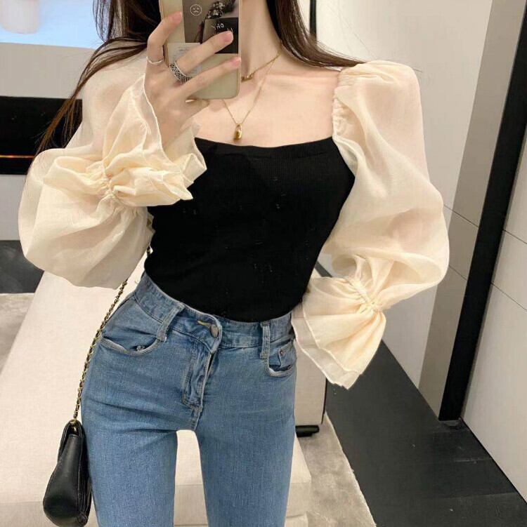 オフショルダー 透け感 トップス ショート ショート丈 袖あり 長袖 ボリューム袖 スクエアネック 襟なし タイト 細身 切り替えデザイン シフォン 薄手 かわいい 大人可愛い きれいめ 大人 おしゃれ お洒落 セクシー 無地 春 夏 二次会 2021 10代 20代 レディース 女性用 デート お出かけ 女子会 休日 パーティー イベント リゾート 旅行 ファッション コーデ スタイル モテ S M L 黒 ブラック