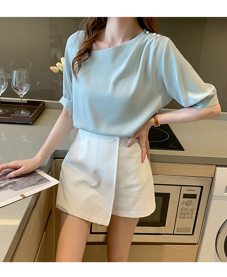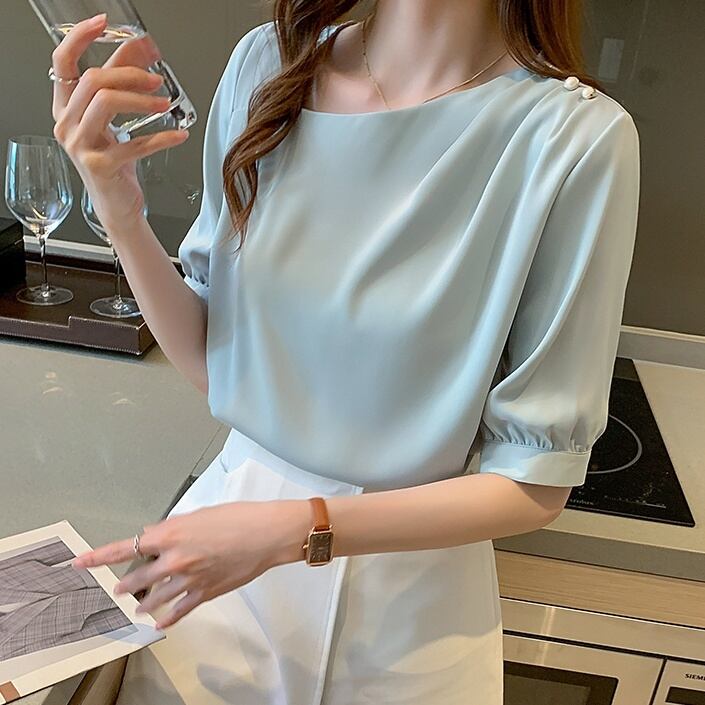 着回し力抜群のトップス!!上品に仕上がります◎ ショートパンツとの相性も抜群♪ 色展開 ホワイト ライトブルー ピンク サイズ S M L XL サイズ(cm) S /着丈 57 /バスト 92 /袖丈 28 /肩幅 35 M /着丈 58 /バスト 96 /袖丈 29 /肩幅 36 L /着丈 59 /バスト 100 /袖丈 30 /肩幅 37 XL /着丈 60 /バスト 104 /袖丈 31 /肩幅 38 ※モニターの仕様や、角度によって多少色合いが異なる場合がございます。 ※サイズは平置きで測定しております。測り方や位置、素材の性質によりサイズに1-4cm程の誤差が生じる場合がございます。 【商品について】 ・こちらの商品は海外お取り寄せ商品です。 ・お手元に到着するまでに10-25日程度お時間をいただいておりますが、さらにお時間がかかってしまう場合や、欠品や不具合などにより商品をご用意できずご注文をキャンセルとさせていただく場合もございます。予めご了承下さいませ。 ・商品はすべて検品を行なった上で発送しております。到着後は、できるだけ早めに商品の状態をご確認願います。 ・海外製品のため日本製よりも縫製や糸の始末が甘い、微細なほつれ、匂いや微細な汚れなどといった場合がございます。ご理解、ご了承いただけますようお願いいたします。 ・万が一、初期不良や誤納品がございましたら、商品到着より5日以内にお知らせ下さい。誠意を持って早急に対応させていただきます。 【返品について】 ご注文確定後のキャンセルや内容変更はお受けすることができません。 不良品または誤納品の場合を除き、返品・交換はお受けできませんのでご了承ください。 何かご不明な点などがございましたら、お気軽にお問い合せくださいませ。 ts-499