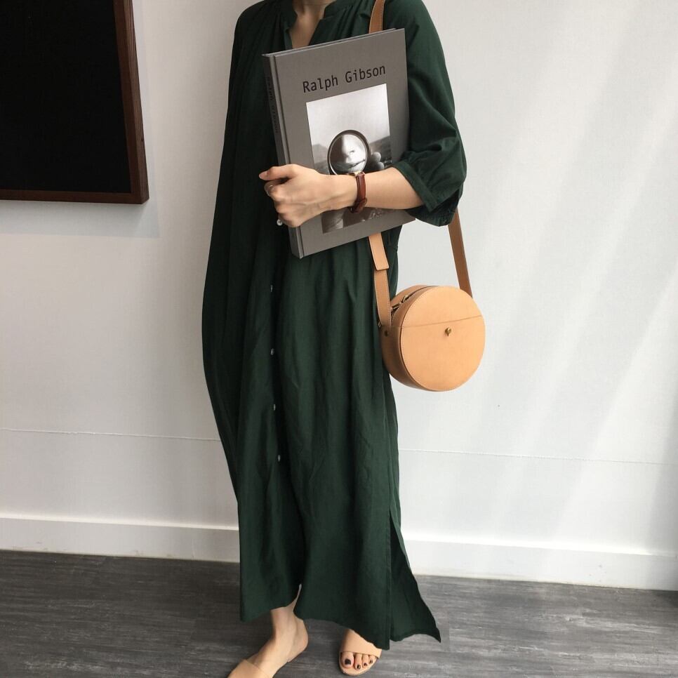ワンピース シャツ ロング丈 袖あり 半袖 5分袖 パフスリーブ Vネック 襟付き スタンドカラー フレア Aライン リボン ウエストマーク 前開き ポリエステル かわいい 大人可愛い シンプル カジュアル おしゃれ 大人可愛い 大人女子 こなれ感 ラフ 抜け感 無地 シンプル 夏 秋 20代 30代 40代 レディース ママ マタニティ OL 通勤 デート お出かけ 女子会 お泊まり 休日 リゾート 旅行 海 重ね着 体型カバー S M L XL 2XL グリーン オレンジ