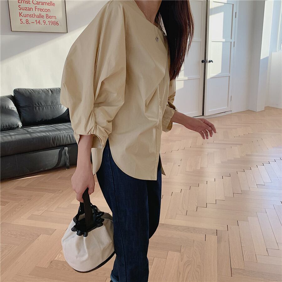 トップス シャツ レディース 7分袖 ラウンドネック 前開き ボタン フィッシュテール ミディアム丈 かわいい 大人可愛い きれいめ シンプル 上品 おしゃれ かっこいい カジュアル こなれ感 個性的 主役級 存在感 抜け感 オールシーズン ベーシック ナチュラル クール フォーマル 無地 女性用 ママ マタニティ OL 通勤 オフィス 学生 通学 デート お出かけ お泊まり 女子会 旅行 休日 アウトドア カフェ ショッピング コンパ レストラン 普段使い デイリー 着回し レイヤード 重ね着 M L
