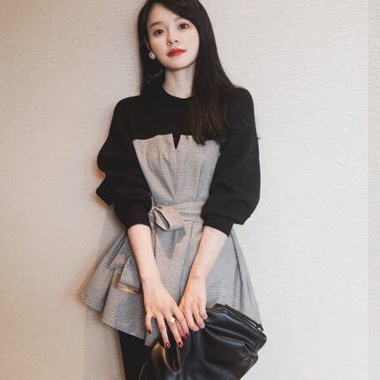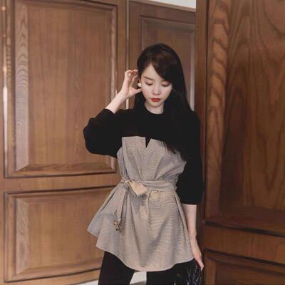 トップス シャツ ミディアム丈 袖あり 長袖 ボリューム袖 ラウンドネック 襟付き ペプラム 切り替えデザイン ウエストリボン かわいい 大人可愛い きれいめ 上品 おしゃれ 大人可愛い 大人女子 キュート ガーリー 柄 チェック柄 春 秋 2021 10代 20代 レディース デート お出かけ 女子会 休日 レストラン カフェ ショッピング 着回し 普段使い モテ 新作 サイズ S M L XL ブラック