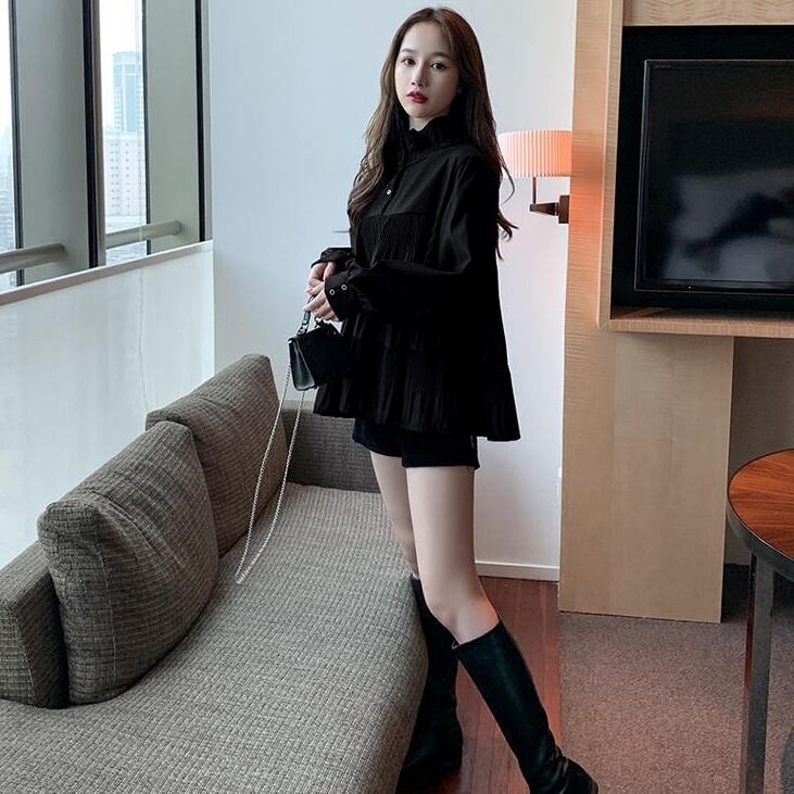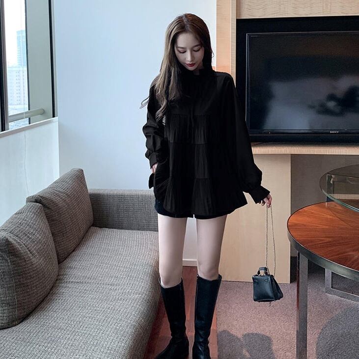 トップス シャツ ブラウス チュニック 長袖 ボリューム袖 Vネック 襟付き ポケット かわいい 大人可愛い シンプル おしゃれ かっこいい ガーリー 個性的 クール モード系 ラブリー キュート 都会的 ロマンティック 無地 春 秋 通勤 通学 お出かけ パーティー イベント リゾート 旅行 レストラン 女子会 休日 ショッピング カフェ 重ね着 お揃い 体型カバー 普段使い 着回し レイヤード モテ L XL 2XL 3XL 4XL 小さいサイズ 大きいサイズ ビッグ ゆったり ゆる 黒 ブラック