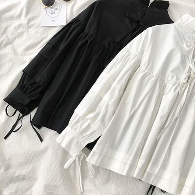トップス シャツ ミディアム丈 袖あり 長袖 パフスリーブ 襟付き ハイカラー ストレート ワイド レース ポリエステル かわいい シンプル おしゃれ 大人可愛い 大人女子 ラブリー キュート ガーリー ルーズ 無地 春 夏 2020 10代 20代 レディース 学生 デート お出かけ 女子会 休日 旅行 カフェ ショッピング 着回し 普段使い オルチャン コーデ モテ インスタ映え デートコーデ フリーサイズ ホワイト