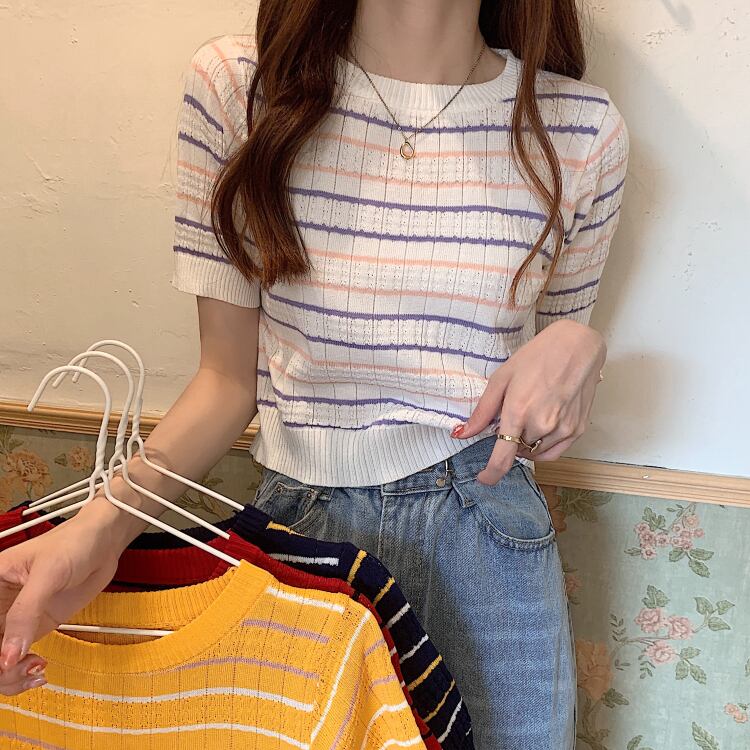 トップス ブラウス カットソー 白シャツ 白トップス 袖あり 半袖 スクエアネック 襟なし ふわふわ 前開き 編み込み 薄手 かわいい きれいめ シンプル カジュアル 大人 上品 おしゃれ お洒落 かっこいい レトロ 大人可愛い 大人女子 主役級 存在感 柄 ボーダー 0 夏 2021 10代 20代 30代 女性用 ママ 女の子 デート お出かけ 公園デビュー 女子会 お泊まり 休日 イベント リゾート 旅行 海 プール 着回し 普段使い 韓国 韓国系 オルチャン ファッション コーデ スタイル