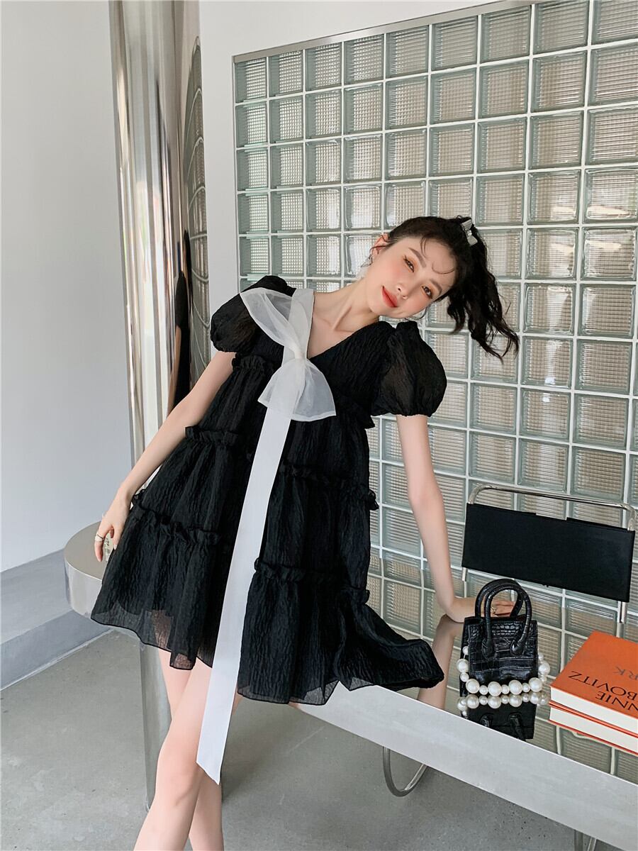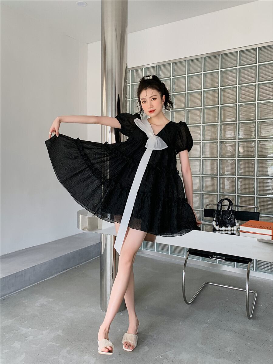 ワンピース レディース フレア ミニ ショート 7分袖 長袖 ボリューム袖 バルーン袖 ラウンドネック フレア セミフレア Aライン 切り替え ドッキング かわいい 大人可愛い きれいめ シンプル カジュアル おしゃれ こなれ感 ラフ ガーリー ルーズ 存在感 抜け感 ヴィンテージ キュート ベーシック アメリカン プレッピー アクティブ ナチュラル デート お出かけ 休日 普段使い 着回し インスタ映え S M L XL 2XL 3XL 小さいサイズ 大きいサイズ ビッグ ゆったり ゆる 黒 ブラック