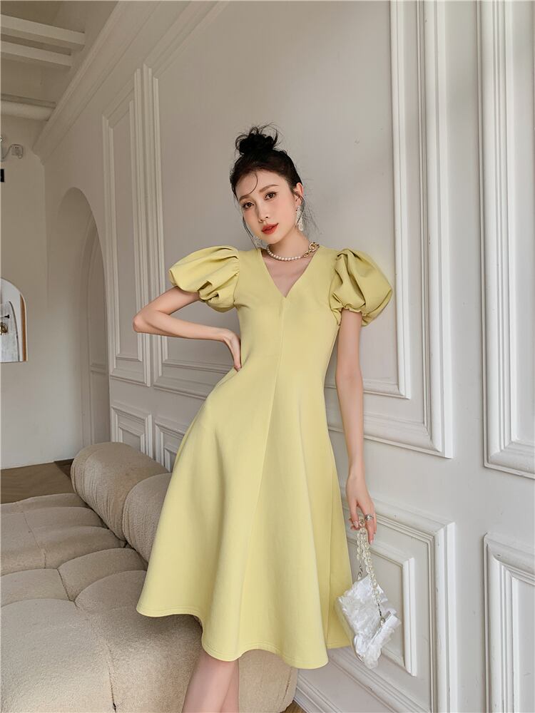 レトロなワンピースドレス パーティーや結婚式にも◎ 【カラー】イエロー ※モニターの仕様や、角度によって多少色合いが異なる場合がございます。 【サイズ (cm) 】 S /着丈 104.0 /バスト 78.0 /ウェスト 64.0 /袖丈 29.0 M /着丈 105.0 /バスト 82.0 /ウェスト 68.0 /袖丈 30.0 L /着丈 106.0 /バスト 86.0 /ウェスト 72.0 /袖丈 31.0 XL /着丈 107.0 /バスト 90.0 /ウェスト 76.0 /袖丈 32.0 ※サイズは平置きで測定しております。測り方や位置、素材の性質によりサイズに1-4cm程の誤差が生じる場合がございます。 【商品について】 ・こちらの商品は海外お取り寄せ商品です。 ・お手元に到着するまでに10-25日程度お時間をいただいておりますが、さらにお時間がかかってしまう場合や、欠品や不具合などにより商品をご用意できずご注文をキャンセルとさせていただく場合もございます。予めご了承下さいませ。 ・商品はすべて検品を行なった上で発送しております。到着後は、できるだけ早めに商品の状態をご確認願います。 ・海外製品のため日本製よりも縫製や糸の始末が甘い、微細なほつれ、匂いや微細な汚れなどといった場合がございます。ご理解、ご了承いただけますようお願いいたします。 ・万が一、初期不良や誤納品がございましたら、商品到着より5日以内にお知らせ下さい。誠意を持って早急に対応させていただきます。 【返品について】 ご注文確定後のキャンセルや内容変更はお受けすることができません。 不良品または誤納品の場合を除き、返品・交換はお受けできませんのでご了承ください。 何かご不明な点などがございましたら、お気軽にお問い合せくださいませ。 op-601