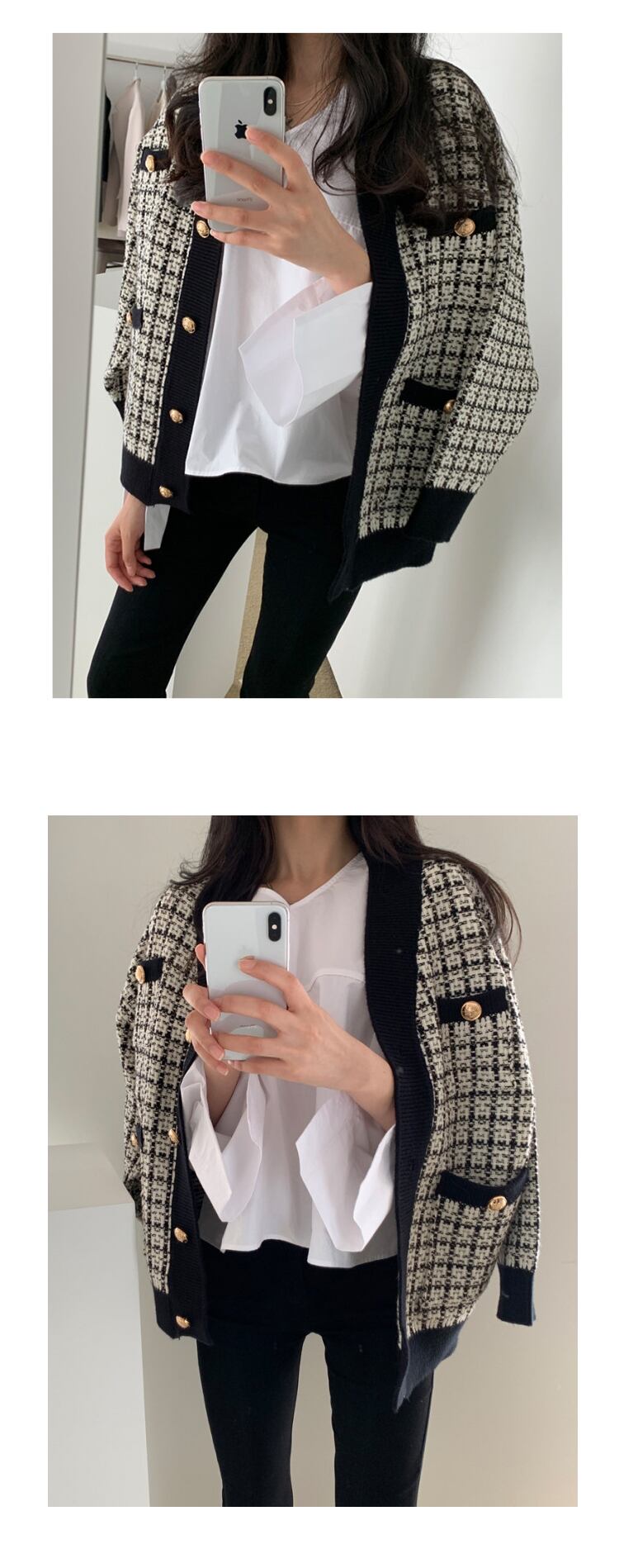 ツイード調のデザインで、上品からカジュアルまでいろんなコーディネートを楽しめるカーディガン。 ボトムスを選ばず、これを着るだけでコーディネートが決まります。 色展開 ブラック ホワイト サイズ ワンサイズ サイズ(cm) /バスト 104 /着丈 65 ※モニターの仕様や、角度によって多少色合いが異なる場合がございます。 ※サイズは平置きで測定しております。測り方や位置、素材の性質によりサイズに1-4cm程の誤差が生じる場合がございます。 【商品について】 ・こちらの商品は海外お取り寄せ商品です。 ・お手元に到着するまでに10-25日程度お時間をいただいておりますが、さらにお時間がかかってしまう場合や、欠品や不具合などにより商品をご用意できずご注文をキャンセルとさせていただく場合もございます。予めご了承下さいませ。 ・商品はすべて検品を行なった上で発送しております。到着後は、できるだけ早めに商品の状態をご確認願います。 ・海外製品のため日本製よりも縫製や糸の始末が甘い、微細なほつれ、匂いや微細な汚れなどといった場合がございます。ご理解、ご了承いただけますようお願いいたします。 ・万が一、初期不良や誤納品がございましたら、商品到着より5日以内にお知らせ下さい。誠意を持って早急に対応させていただきます。 【返品について】 ご注文確定後のキャンセルや内容変更はお受けすることができません。 不良品または誤納品の場合を除き、返品・交換はお受けできませんのでご了承ください。 何かご不明な点などがございましたら、お気軽にお問い合せくださいませ。 wwts-077