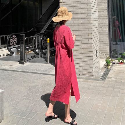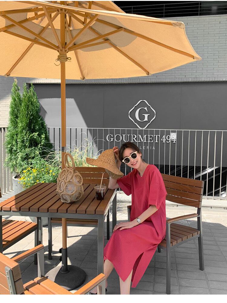 半袖ワンピース ワンピース フレアワンピース ミモレ ミモレ丈 袖あり 半袖 Uネック スリット 綿 麻 リネン かわいい 大人可愛い きれいめ シンプル カジュアル 大人 おしゃれ お洒落 大人可愛い 大人女子 こなれ感 ラフ ラブリー キュート ガーリー 主役級 存在感 無地 春 夏 10代 20代 30代 レディース 学生 通学 デート お出かけ 女子会 休日 リゾート 旅行 着回し 普段使い 韓国 韓国系 サイズ S M L XL 赤 レッド
