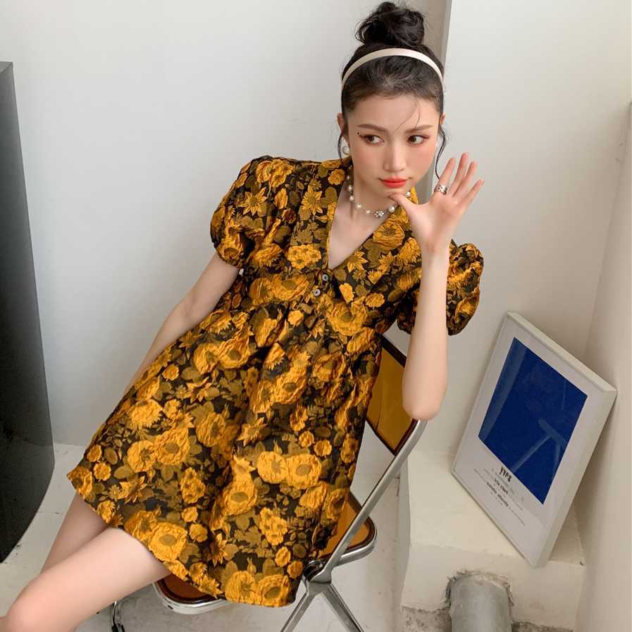 ワンピース ミニ ミニ丈 膝上 袖あり 半袖 ボリューム袖 ドルマンスリーブ Vネック 襟なし フレア 切り替えデザイン 薄手 かわいい きれいめ シンプル 大人 上品 おしゃれ お洒落 かっこいい レトロ 大人女子 主役級 存在感 柄 花柄 小花柄 フラワー ボタニカル 0 夏 2021 10代 20代 30代 女性用 ママ 女の子 デート お出かけ 公園デビュー 女子会 お泊まり 休日 イベント リゾート 旅行 海 プール 着回し 普段使い 韓国 韓国系 オルチャン ファッション コーデ