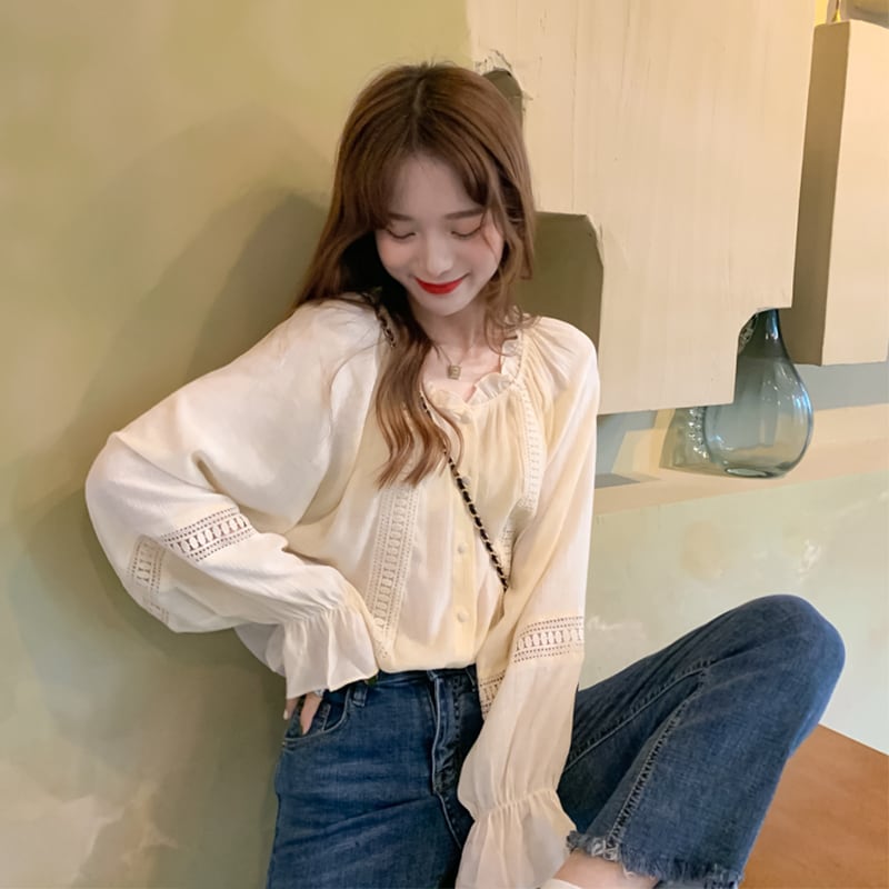 トップス シャツ ミディアム丈 袖あり 長袖 萌袖 ラグランスリーブ Vネック 襟付き ストレート ワイド レース シフォン 薄手 かわいい 大人可愛い シンプル 上品 おしゃれ 大人可愛い 大人女子 ラブリー キュート ガーリー ルーズ 無地 春 秋 2021 10代 20代 レディース デート お出かけ 女子会 休日 パーティー カフェ ショッピング 着回し 普段使い 韓国系 スタイル モテ 新作 プチプラ インスタ映え フリーサイズ アプリコット