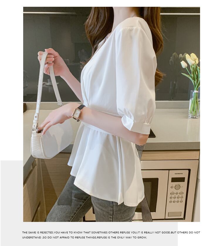 ペプラムシルエットとカシュクールで女性らしさを感じるVネックブラウス。 ウエストマークデザインで体型カバーも! バックリボンがアクセントで、気分に合わせてフロントで着こなしてもOK。 色展開 ホワイト サイズ S M L XL 2XL サイズ(cm) S /肩幅 38 /バスト 92 /着丈 56 /袖丈 28 M /肩幅 39 /バスト 96 /着丈 57 /袖丈 29 L /肩幅 40 /バスト 100 /着丈 58 /袖丈 30 XL /肩幅 41 /バスト 104 /着丈 59 /袖丈 31 2XL /肩幅 42 /バスト 108 /着丈 60 /袖丈 32 ※モニターの仕様や、角度によって多少色合いが異なる場合がございます。 ※サイズは平置きで測定しております。測り方や位置、素材の性質によりサイズに1-4cm程の誤差が生じる場合がございます。 【商品について】 ・こちらの商品は海外お取り寄せ商品です。 ・お手元に到着するまでに10-25日程度お時間をいただいておりますが、さらにお時間がかかってしまう場合や、欠品や不具合などにより商品をご用意できずご注文をキャンセルとさせていただく場合もございます。予めご了承下さいませ。 ・商品はすべて検品を行なった上で発送しております。到着後は、できるだけ早めに商品の状態をご確認願います。 ・海外製品のため日本製よりも縫製や糸の始末が甘い、微細なほつれ、匂いや微細な汚れなどといった場合がございます。ご理解、ご了承いただけますようお願いいたします。 ・万が一、初期不良や誤納品がございましたら、商品到着より5日以内にお知らせ下さい。誠意を持って早急に対応させていただきます。 【返品について】 ご注文確定後のキャンセルや内容変更はお受けすることができません。 不良品または誤納品の場合を除き、返品・交換はお受けできませんのでご了承ください。 何かご不明な点などがございましたら、お気軽にお問い合せくださいませ。 wwts-115