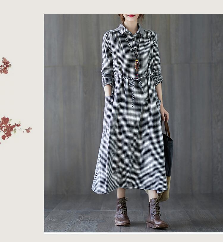 チェック柄ロングシャツワンピース ワンピース シャツワンピース ロング ロング丈 袖あり 長袖 Vネック ポケット 綿 麻 リネン かわいい 大人可愛い きれいめ シンプル カジュアル 大人 おしゃれ お洒落 大人可愛い 大人女子 ラブリー キュート ガーリー 主役級 存在感 柄 チェック柄 春 秋 10代 20代 30代 レディース 学生 通学 デート お出かけ 女子会 休日 着回し 普段使い お揃い 韓国 韓国系 サイズ M L XL 2XL 黒 ブラック