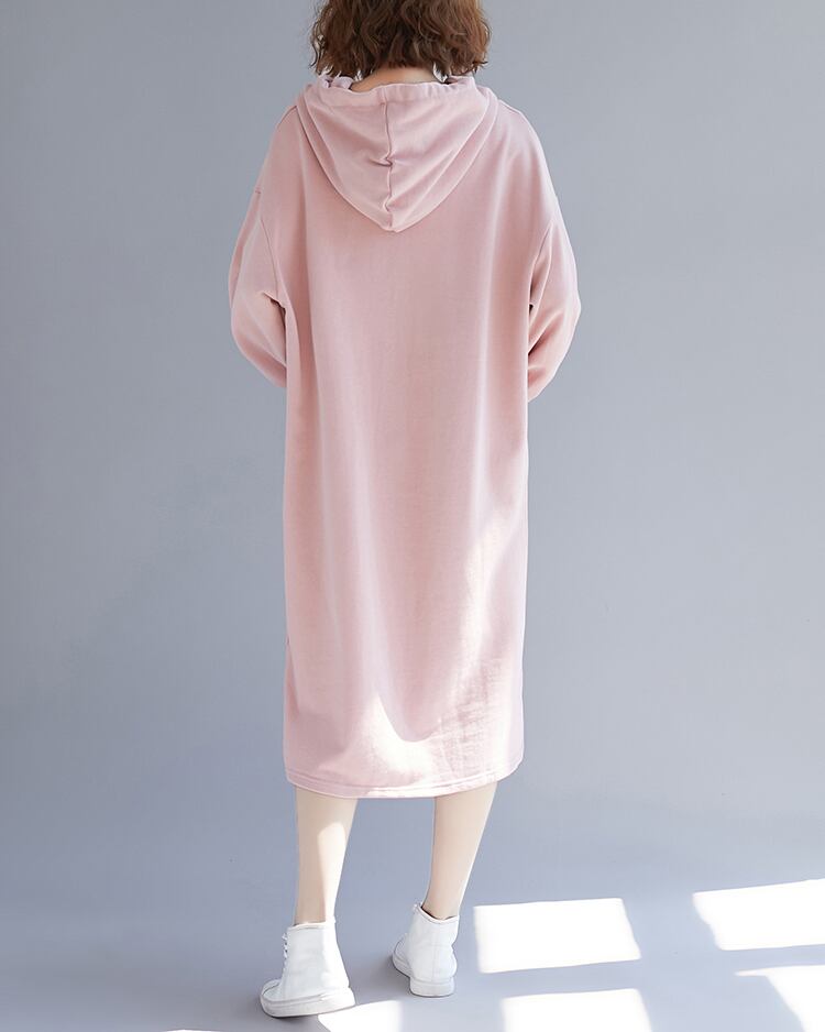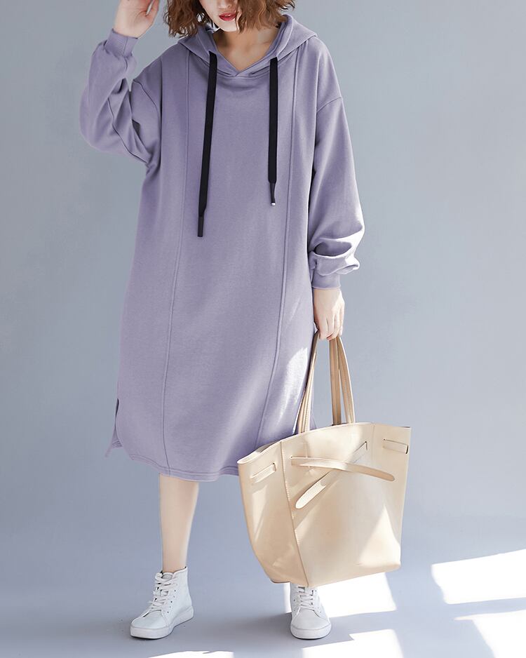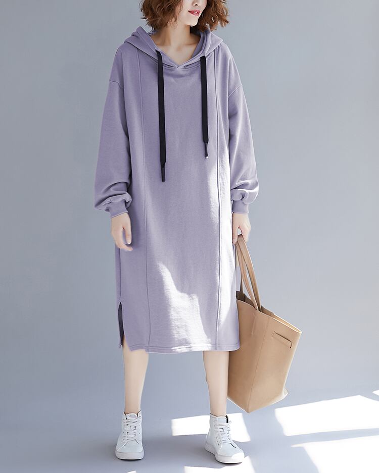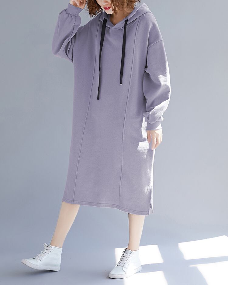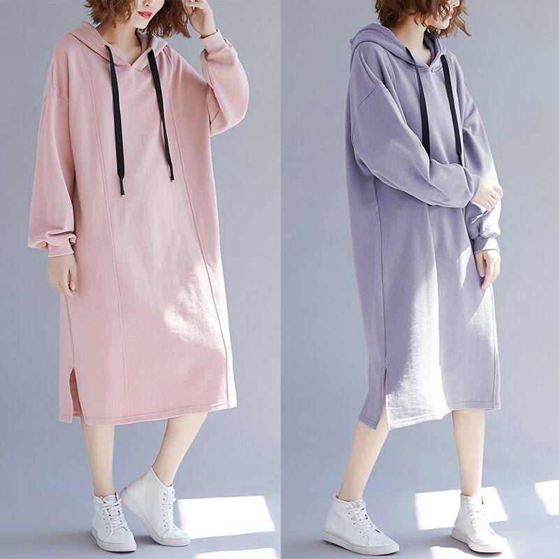 フード付スウェットワンピース ワンピース 膝下 ミモレ ミモレ丈 袖あり 長袖 スリット フード付き 綿 かわいい 大人可愛い きれいめ シンプル カジュアル 大人 おしゃれ お洒落 大人可愛い 大人女子 ラブリー キュート ガーリー 主役級 存在感 無地 春 秋 10代 20代 30代 レディース 学生 通学 デート お出かけ 女子会 休日 着回し 普段使い 韓国 韓国系 サイズ XL 2XL 色展開 紫 パープル ピンク