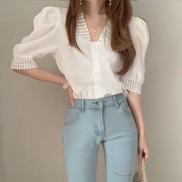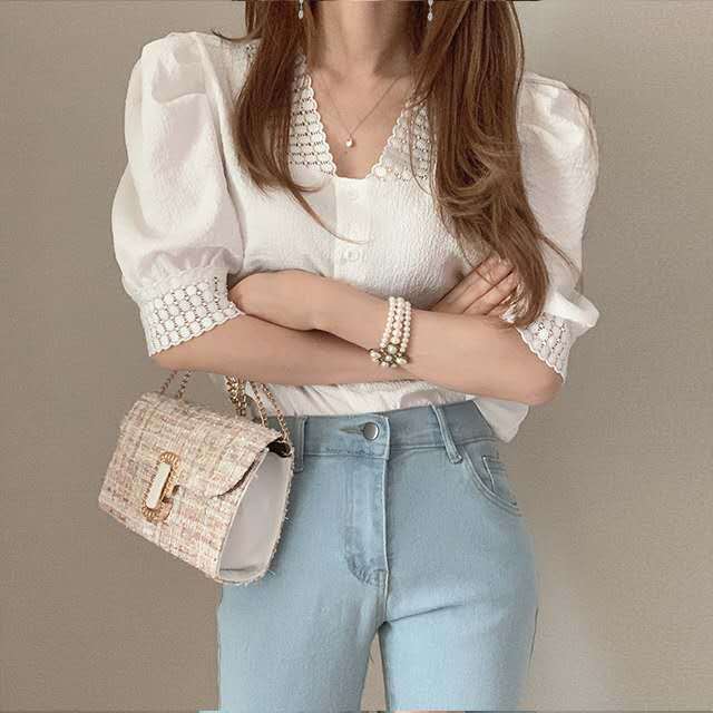襟口と袖口のレースがかわいい、夏にぴったりの白トップス。 Vネックとボリューム袖でフェミニンな雰囲気。 爽やかにデニムと合わせるのがおすすめです。 色展開 ホワイト サイズ ワンサイズ ※モニターの仕様や、角度によって多少色合いが異なる場合がございます。 ※サイズは平置きで測定しております。測り方や位置、素材の性質によりサイズに1-4cm程の誤差が生じる場合がございます。 【商品について】 ・こちらの商品は海外お取り寄せ商品です。 ・お手元に到着するまでに10-25日程度お時間をいただいておりますが、さらにお時間がかかってしまう場合や、欠品や不具合などにより商品をご用意できずご注文をキャンセルとさせていただく場合もございます。予めご了承下さいませ。 ・商品はすべて検品を行なった上で発送しております。到着後は、できるだけ早めに商品の状態をご確認願います。 ・海外製品のため日本製よりも縫製や糸の始末が甘い、微細なほつれ、匂いや微細な汚れなどといった場合がございます。ご理解、ご了承いただけますようお願いいたします。 ・万が一、初期不良や誤納品がございましたら、商品到着より5日以内にお知らせ下さい。誠意を持って早急に対応させていただきます。 【返品について】 ご注文確定後のキャンセルや内容変更はお受けすることができません。 不良品または誤納品の場合を除き、返品・交換はお受けできませんのでご了承ください。 何かご不明な点などがございましたら、お気軽にお問い合せくださいませ。 wwts-131