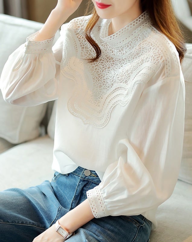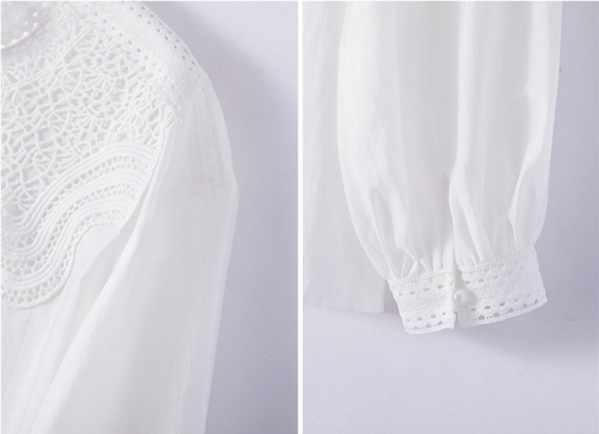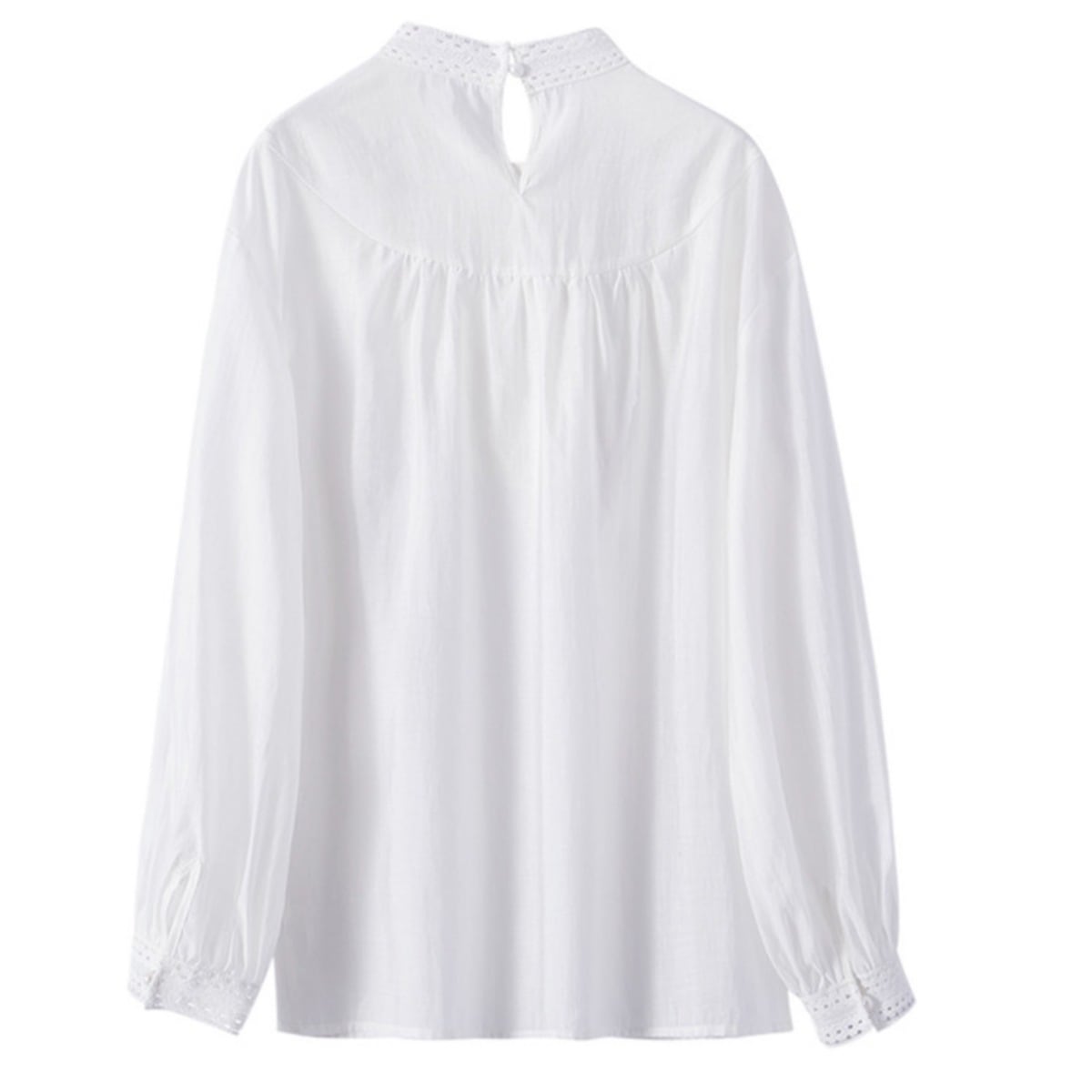 トップス ブラウス 白シャツ 白トップス 袖あり 長袖 ボリューム袖 ドロップショルダー スタンドカラー レース シフォン 透け感 薄手 きれいめ シンプル カジュアル 大人 上品 おしゃれ お洒落 こなれ感 ガーリー とろみ感 無地 春 夏 秋 10代 20代 30代 40代 レディース 女性用 ママ デート お出かけ 女子会 休日 リゾート 旅行 海 プール 高原 ガーデン 着回し 普段使い モテ S M L XL ゆったり 白 ホワイト