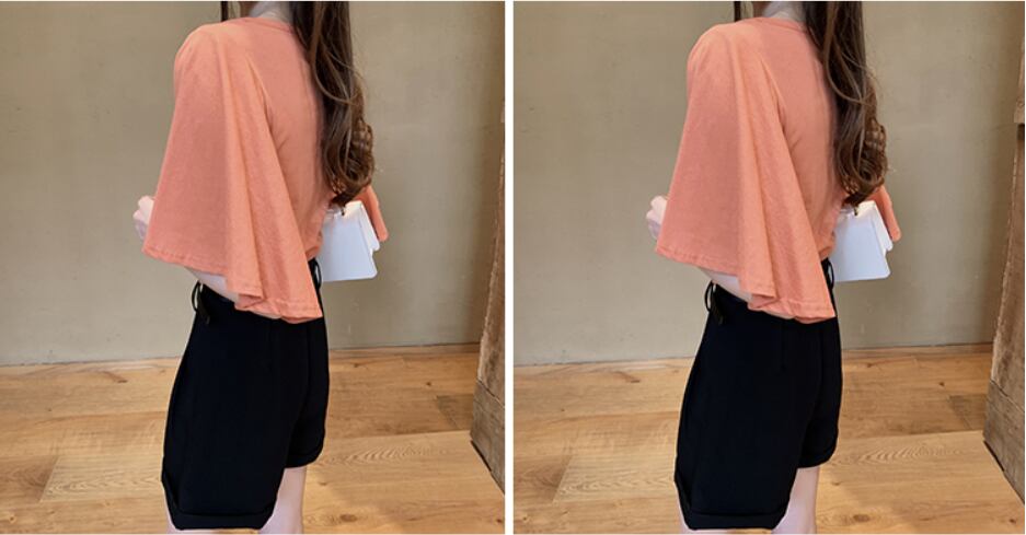 広めのVネックでデコルテが綺麗に見え、フレアスリーブで二の腕カバーもできるゆったりTシャツ。 パンツと合わせてラフに、スカートと合わせてフェミニンにも! 色展開 クリムゾン ホワイト ブラック サイズ M L XL 2XL 3XL 4XL サイズ(cm) M /バスト 92 /着丈 54 /袖丈 29 L /バスト 96 /着丈 55 /袖丈 30 XL /バスト 102 /着丈 56 /袖丈 31 2XL /バスト 108 /着丈 57 /袖丈 32 3XL /バスト 114 /着丈 58 /袖丈 33 4XL /バスト 120 /着丈 59 /袖丈 34 ※モニターの仕様や、角度によって多少色合いが異なる場合がございます。 ※サイズは平置きで測定しております。測り方や位置、素材の性質によりサイズに1-4cm程の誤差が生じる場合がございます。 【商品について】 ・こちらの商品は海外お取り寄せ商品です。 ・お手元に到着するまでに10-25日程度お時間をいただいておりますが、さらにお時間がかかってしまう場合や、欠品や不具合などにより商品をご用意できずご注文をキャンセルとさせていただく場合もございます。予めご了承下さいませ。 ・商品はすべて検品を行なった上で発送しております。到着後は、できるだけ早めに商品の状態をご確認願います。 ・海外製品のため日本製よりも縫製や糸の始末が甘い、微細なほつれ、匂いや微細な汚れなどといった場合がございます。ご理解、ご了承いただけますようお願いいたします。 ・万が一、初期不良や誤納品がございましたら、商品到着より5日以内にお知らせ下さい。誠意を持って早急に対応させていただきます。 【返品について】 ご注文確定後のキャンセルや内容変更はお受けすることができません。 不良品または誤納品の場合を除き、返品・交換はお受けできませんのでご了承ください。 何かご不明な点などがございましたら、お気軽にお問い合せくださいませ。 wwts-181