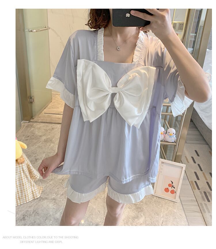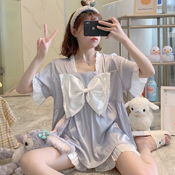 大きなリボンが可愛いブデザインで楽ちん♪ルームウェア上下セット 程よいゆったり感で風通しもよく暑い日でも快適に過ごせそう◎ 色展開 ブルー シャンパン ピンク パープル ホワイト グレーグリーン ダークブルー サイズ M L XL 2XL M 身長152-160 体重40-50 L 身長160-167 体重50-60 XL 身長165-170 体重60-67.5 2XL 身長165-175 体重67.5-77.5 ※モニターの仕様や、角度によって多少色合いが異なる場合がございます。 ※サイズは平置きで測定しております。測り方や位置、素材の性質によりサイズに1-4cm程の誤差が生じる場合がございます。 【商品について】 ・こちらの商品は海外お取り寄せ商品です。 ・お手元に到着するまでに10-25日程度お時間をいただいておりますが、さらにお時間がかかってしまう場合や、欠品や不具合などにより商品をご用意できずご注文をキャンセルとさせていただく場合もございます。予めご了承下さいませ。 ・商品はすべて検品を行なった上で発送しております。到着後は、できるだけ早めに商品の状態をご確認願います。 ・海外製品のため日本製よりも縫製や糸の始末が甘い、微細なほつれ、匂いや微細な汚れなどといった場合がございます。ご理解、ご了承いただけますようお願いいたします。 ・万が一、初期不良や誤納品がございましたら、商品到着より5日以内にお知らせ下さい。誠意を持って早急に対応させていただきます。 【返品について】 ご注文確定後のキャンセルや内容変更はお受けすることができません。 不良品または誤納品の場合を除き、返品・交換はお受けできませんのでご了承ください。 何かご不明な点などがございましたら、お気軽にお問い合せくださいませ。 rw-028