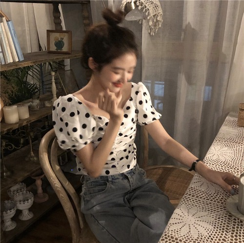 ドットが可愛いショート丈トップス 合わせやすく着回しのきくアイテム! 【カラー】ホワイト ※モニターの仕様や、角度によって多少色合いが異なる場合がございます。 【サイズ (cm) 】 S 肩幅23 バスト63 ウエスト58 袖丈22 着丈40 M 肩幅25 バスト65 ウエスト60 袖丈24 着丈42 L 肩幅27 バスト67 ウエスト62 袖丈26 着丈44 ※サイズは平置きで測定しております。測り方や位置、素材の性質によりサイズに1-4cm程の誤差が生じる場合がございます。 【商品について】 ・こちらの商品は海外お取り寄せ商品です。 ・お手元に到着するまでに10-25日程度お時間をいただいておりますが、さらにお時間がかかってしまう場合や、欠品や不具合などにより商品をご用意できずご注文をキャンセルとさせていただく場合もございます。予めご了承下さいませ。 ・商品はすべて検品を行なった上で発送しております。到着後は、できるだけ早めに商品の状態をご確認願います。 ・海外製品のため日本製よりも縫製や糸の始末が甘い、微細なほつれ、匂いや微細な汚れなどといった場合がございます。ご理解、ご了承いただけますようお願いいたします。 ・万が一、初期不良や誤納品がございましたら、商品到着より5日以内にお知らせ下さい。誠意を持って早急に対応させていただきます。 【返品について】 ご注文確定後のキャンセルや内容変更はお受けすることができません。 不良品または誤納品の場合を除き、返品・交換はお受けできませんのでご了承ください。 何かご不明な点などがございましたら、お気軽にお問い合せくださいませ。 ts-830