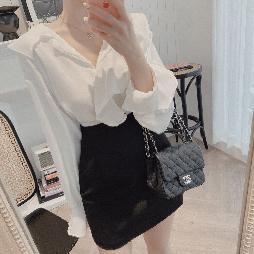 トップス シャツ ブラウス レディース 前開き ロング 長袖 Vネック 襟付き 角襟 オーバーサイズ フェミニン ストリート ボーイフレンド ボタン ヴィンテージ アメカジ かわいい 大人可愛い きれいめ シンプル カジュアル おしゃれ かっこいい レトロ こなれ感 ラフ メンズライク マニッシュ ボーイッシュ ルーズ クール 抜け感 ベーシック アクティブ ナチュラル 無地 春 秋 お出かけ 重ね着 韓国 オルチャン 体型カバー 普段使い 着回し レイヤード S M L XL 黒 ブラック カーキ
