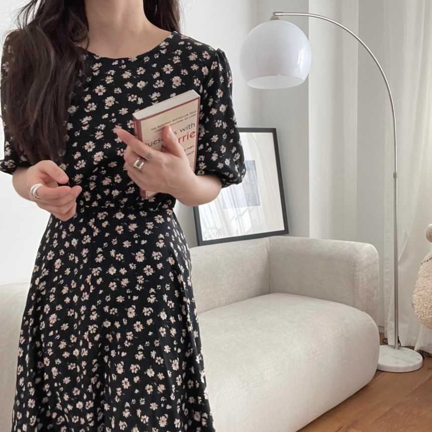 ワンピース フレアワンピース ミモレ ミモレ丈 5分袖 五分袖 ラウンドネック 襟付き フレア ハイウエスト 透け感 薄手 0 かわいい きれいめ シンプル 大人 上品 おしゃれ お洒落 大人可愛い 大人女子 主役級 存在感 柄 花柄 小花柄 フラワー 0 夏 2021 10代 20代 30代 女性用 ママ デート お出かけ 女子会 お泊まり 休日 パーティー イベント 旅行 ホテル ガーデン レストラン 着回し 普段使い 韓国 韓国系 オルチャン ファッション コーデ 楽ちん モテ 新作