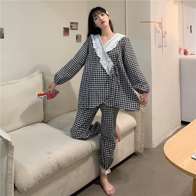 ルームウェア レディース パジャマ 部屋着 寝巻き ナイトウェア 袖あり 長袖 Vネック ブロックチェック チェック柄 ウエストゴム 上下セット 2点セット ツーピース かわいい 大人可愛い シンプル カジュアル おしゃれ お洒落 大人可愛い 大人女子 こなれ感 ラフ ラブリー キュート ガーリー 主役級 存在感 抜け感 無地 20代 30代 レディース 女子会 お泊まり 休日 着回し 普段使い 重ね着 韓国 韓国系 オルチャン スタイル 楽ちん