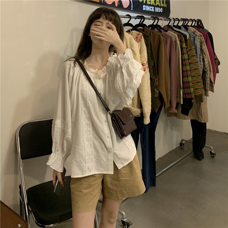 トップス シャツ ブラウス レディース 前開き 長袖 Vネック 襟付き 角襟 オーバーサイズ フェミニン ストリート ボーイフレンド かわいい 大人可愛い きれいめ シンプル カジュアル 上品 おしゃれ かっこいい レトロ こなれ感 メンズライク マニッシュ ボーイッシュ ガーリー ヴィンテージ キュート カレッジ風 学生風 ベーシック アメリカン アクティブ ナチュラル 無地 お出かけ 休日 重ね着 楽ちん 体型カバー 普段使い 着回し レイヤード 定番 茶色 ブラウン グレー オフホワイト ブルー