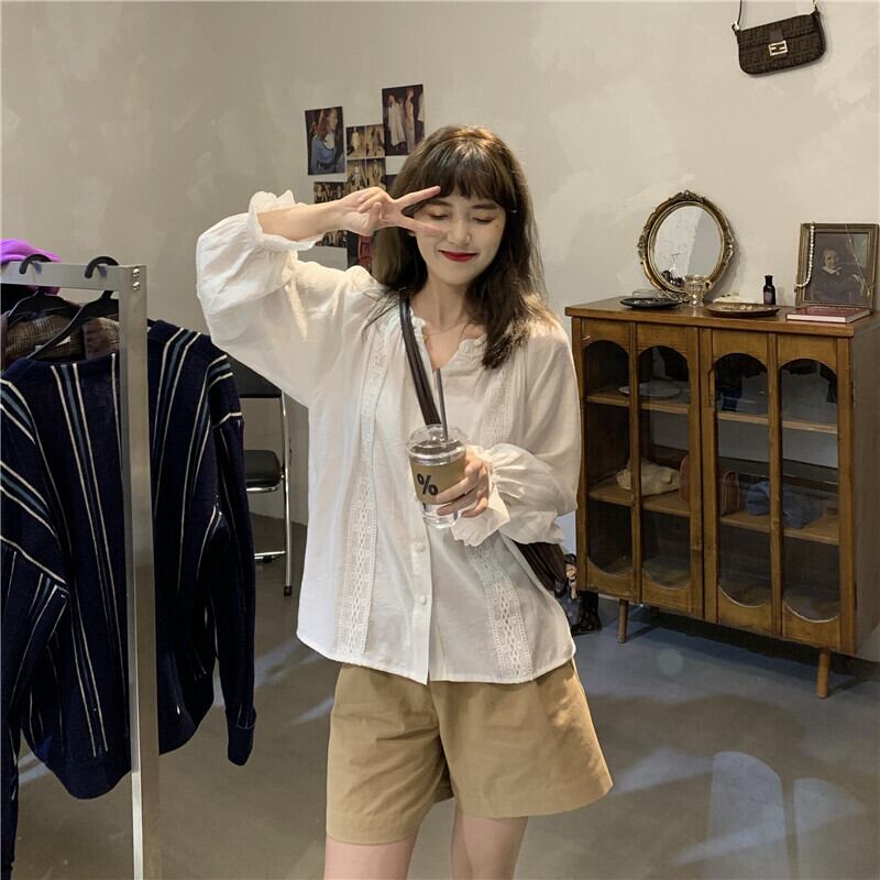 トップス シャツ ブラウス レディース 前開き ロング 長袖 Vネック 襟付き 角襟 オーバーサイズ フェミニン ストリート ボーイフレンド ボタン ヴィンテージ アメカジ かわいい 大人可愛い きれいめ シンプル カジュアル おしゃれ かっこいい レトロ こなれ感 ラフ メンズライク マニッシュ ボーイッシュ ルーズ クール 抜け感 ベーシック アクティブ ナチュラル 無地 春 秋 お出かけ 重ね着 韓国 オルチャン 体型カバー 普段使い 着回し レイヤード S M L XL 黒 ブラック カーキ