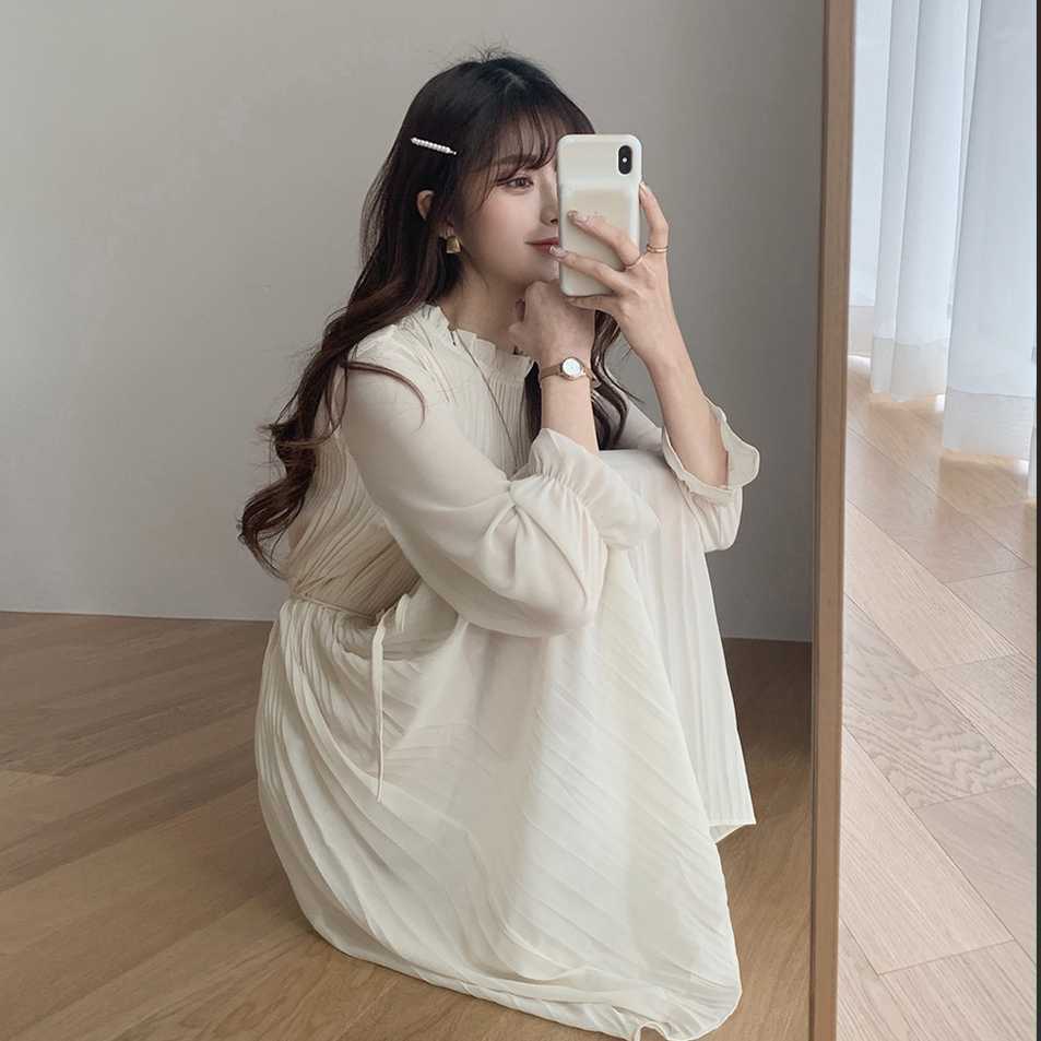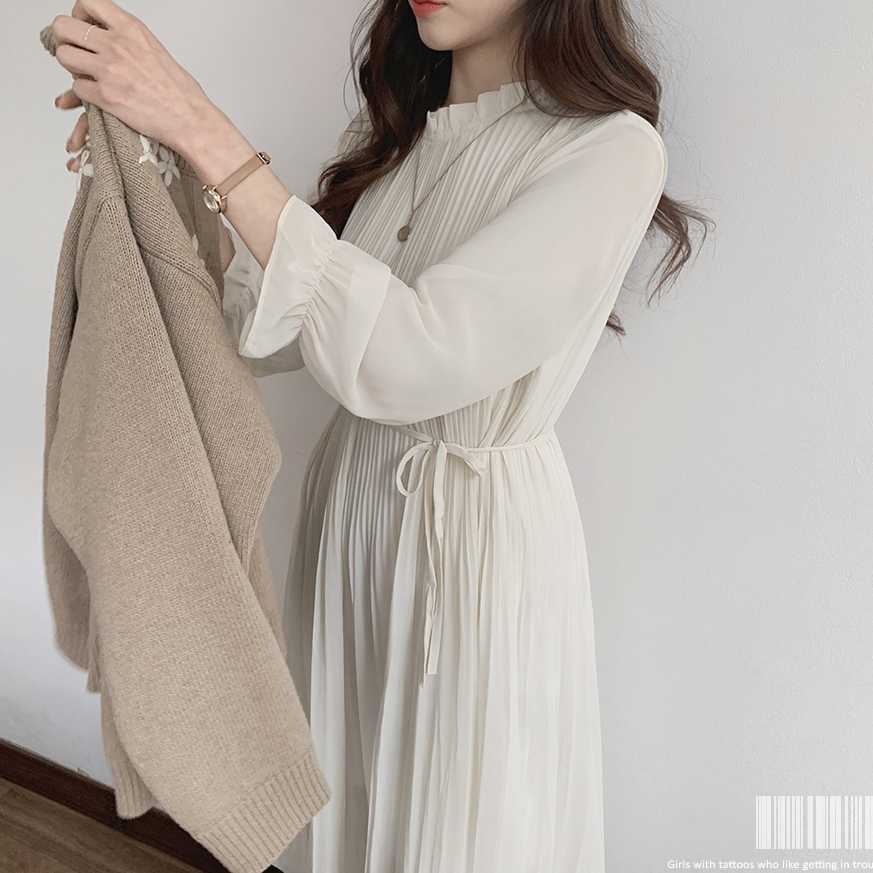 ワンピース シャツワンピース ミモレ ミモレ丈 長袖 ラウンドネック Aライン プリーツ フリル リボン ウエストリボン ハイウエスト ケーブルニット 薄手 0 かわいい きれいめ カジュアル 大人 上品 おしゃれ お洒落 大人可愛い 大人女子 モダン 主役級 存在感 無地 0 春 秋 ハロウィン バレンタイン 2021 10代 20代 30代 女性用 ママ デート お出かけ 女子会 お泊まり 休日 イベント 旅行 ホテル ガーデン レストラン 着回し 普段使い オルチャン ファッション コーデ 楽ちん